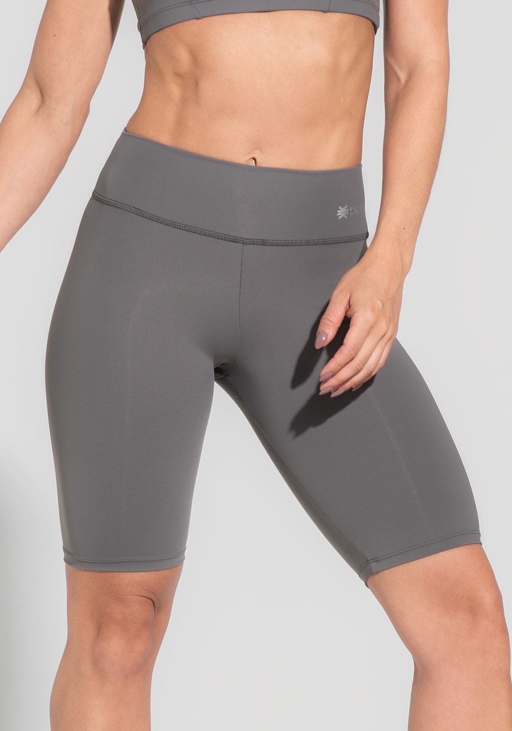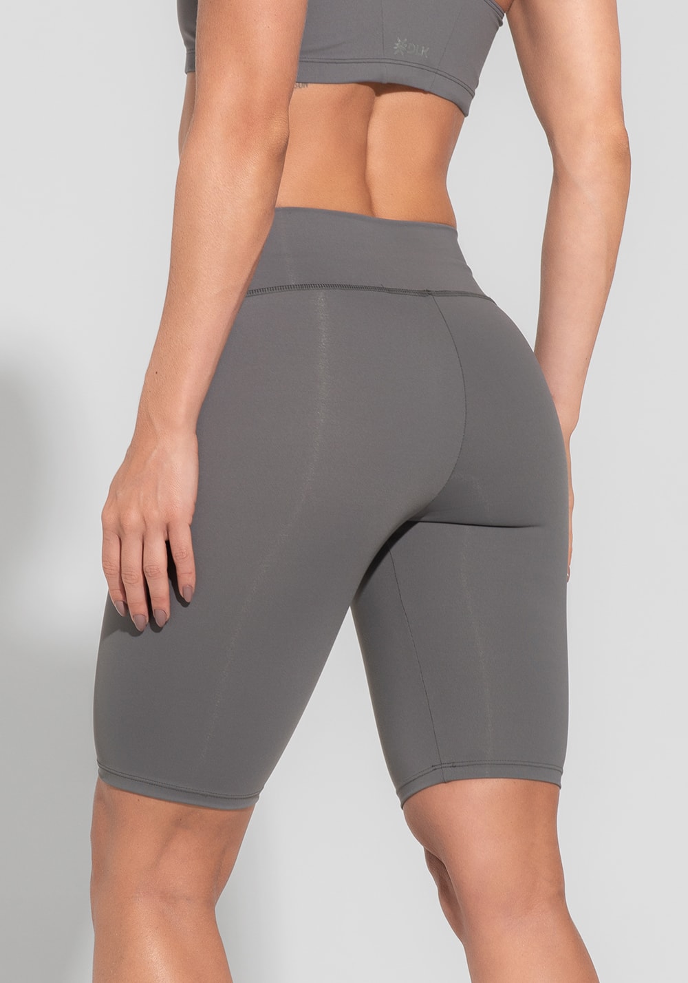 A bermuda cinza básica foi desenvolvida para oferecer mobilidade com compressão média, equilibrando sustentação e liberdade de movimento. O tecido de poliamida possui gramatura que evita a transparência, tem toque macio e se adapta ao corpo sem restringir.