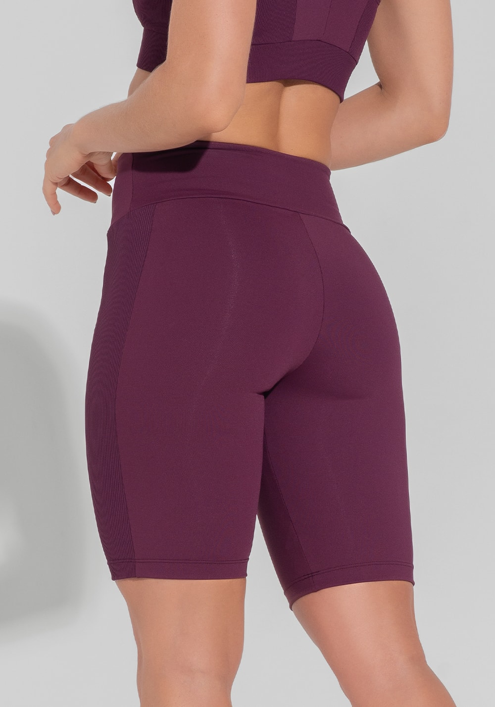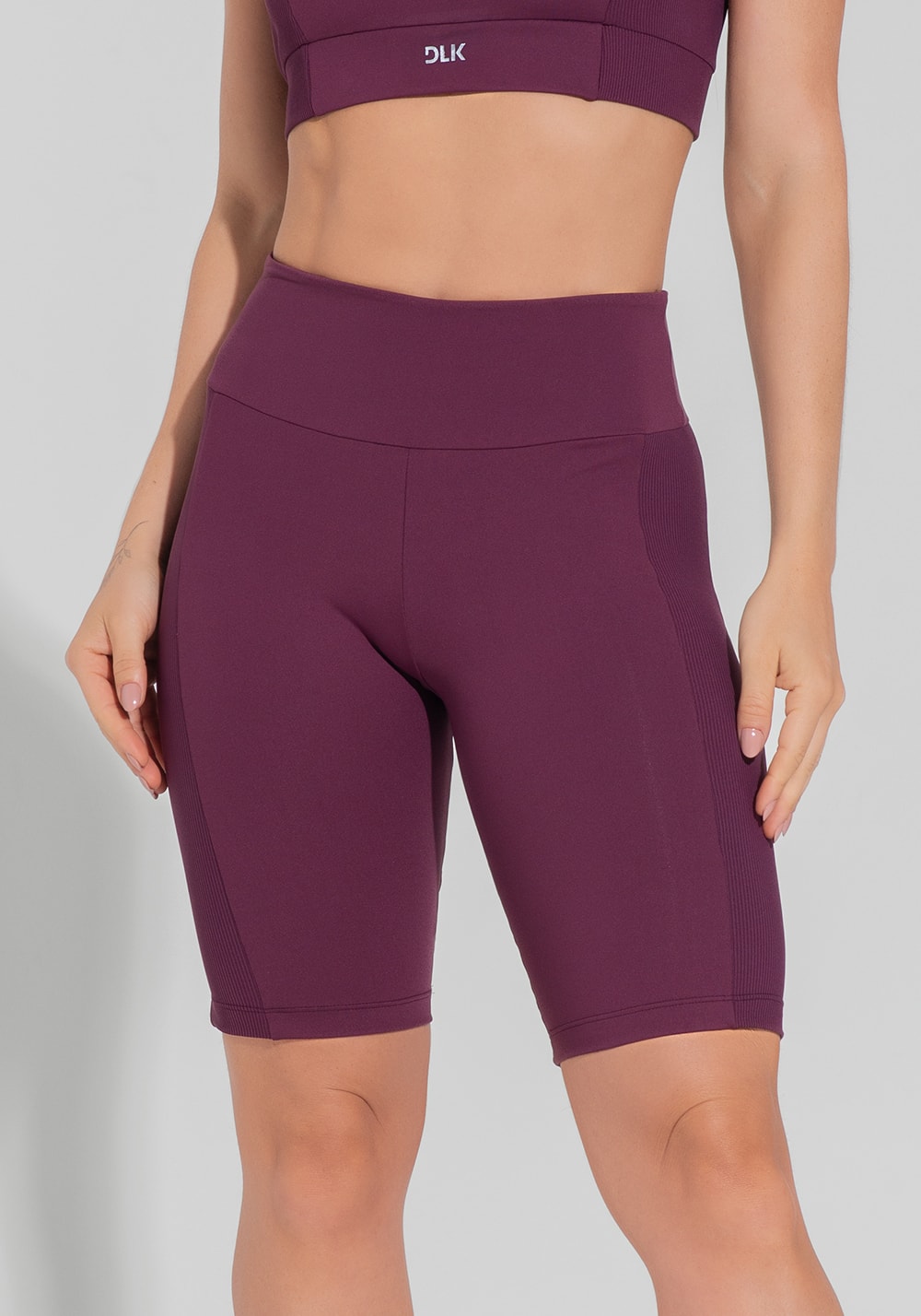 Bermuda fitness feminina com detalhe canelado motion lines dlk vinho