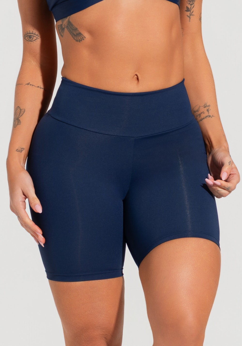 A bermuda azul marinho foi desenvolvida para entregar o equilíbrio perfeito entre firmeza e liberdade. Com cós anatômico que se ajusta ao corpo sem apertar, essa peça acompanha todos os seus movimentos com conforto e leveza. Ideal para treinos mais intensos ou momentos de reconexão com o corpo, ela é um convite ao autocuidado ativo.