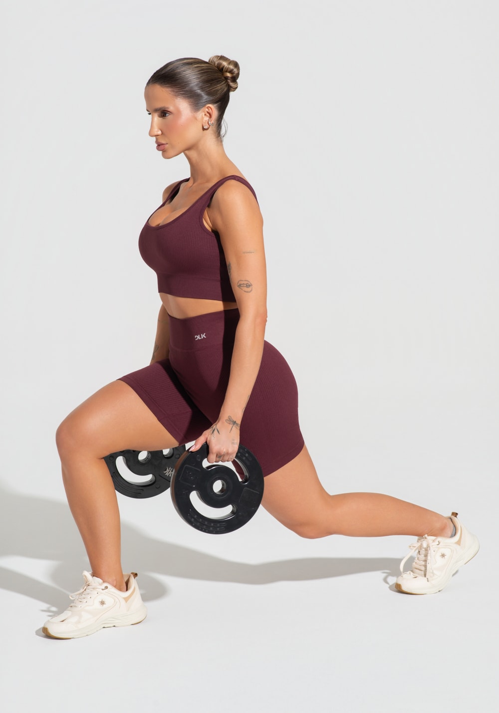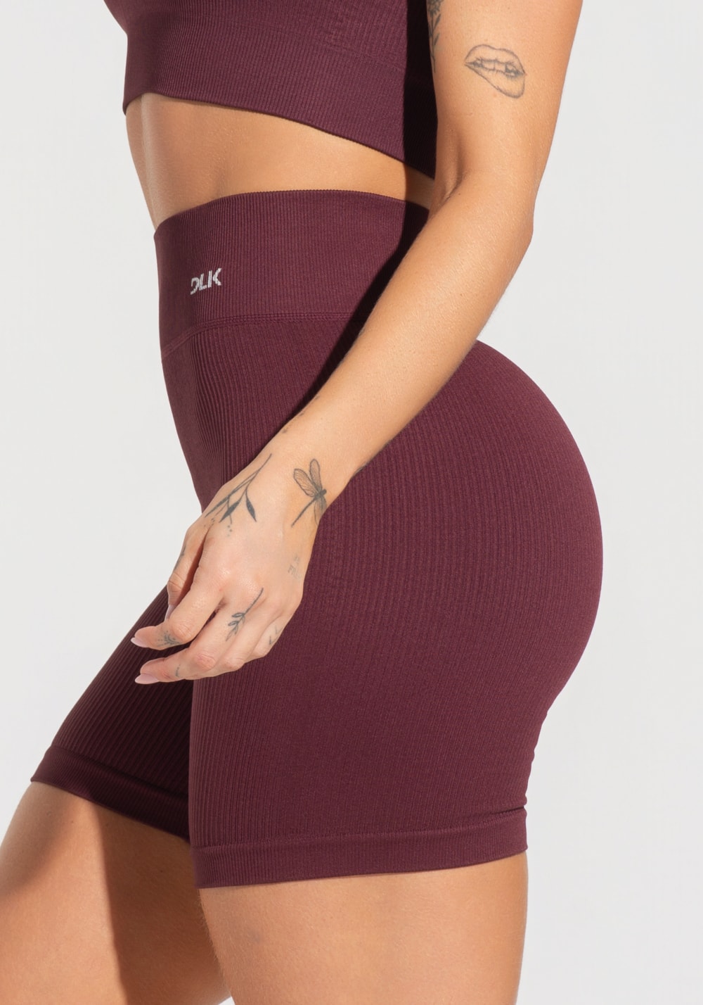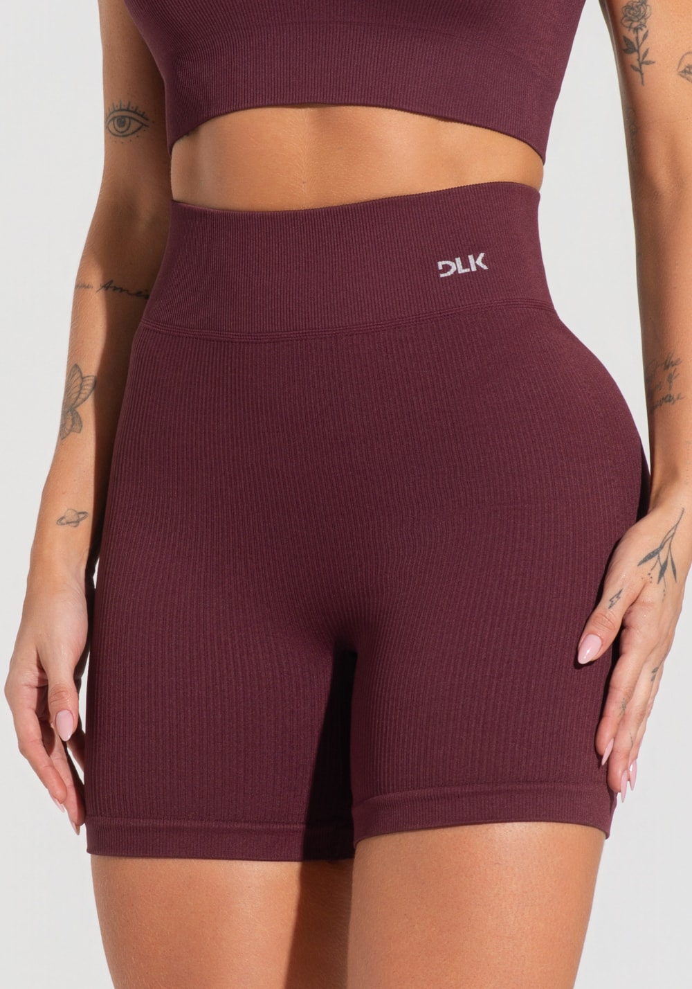 Bermuda fitness feminina vinho canelada com cós alto seamless+ dlk