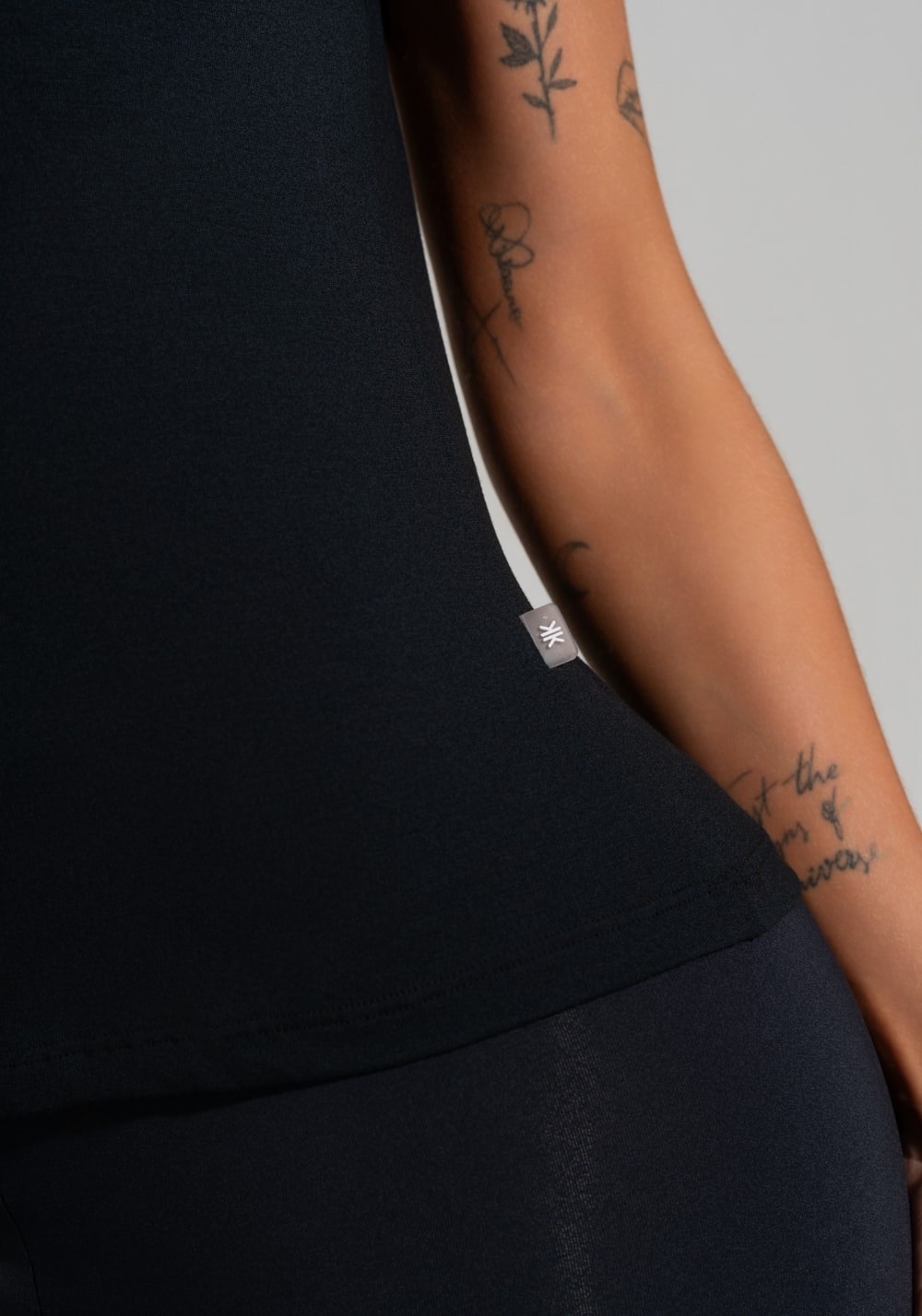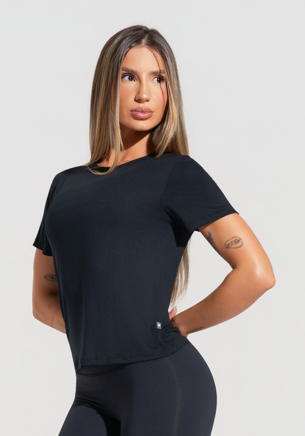 Confeccionada em tecido leve e respirável, essa blusa oferece toque macio, e caimento natural, ideal para acompanhar você em diferentes momentos. A manga curta e a gola arredondada trazem um visual clássico, perfeito para composições casuais ou para o seu treino.