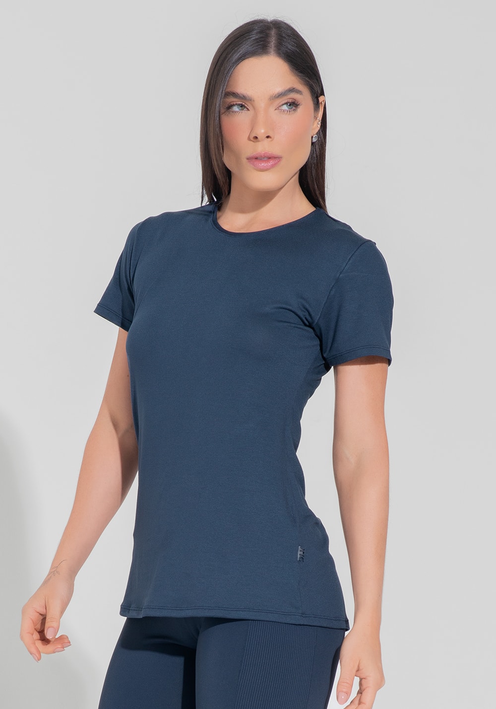 A blusa fitness alongada é confeccionada em modal, uma fibra biodegradável de toque macio com alta capacidade de absorção de umidade e respirabilidade, auxiliando no controle do suor e mantendo o conforto durante o uso.