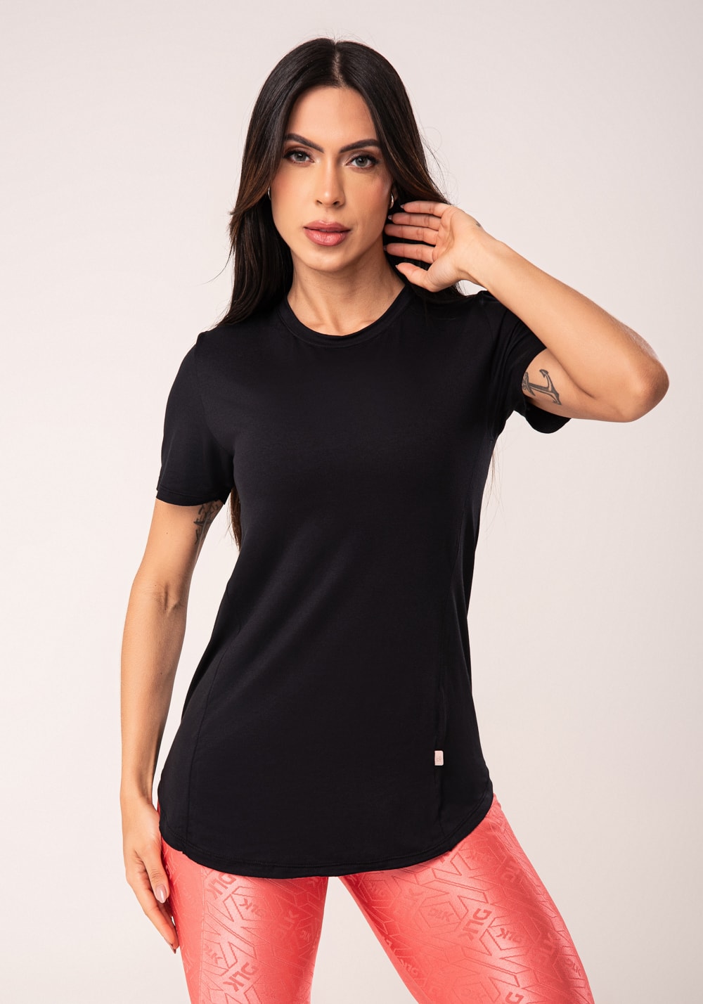 Feita com tecido de toque macio, a Blusa Fitness Feminina Preto Alongada Manga Curta Com Recortes Flow oferece conforto incomparável, abraçando suavemente seu corpo enquanto você se movimenta. Sua modelagem com dimensões alongadas, seu decote arredondado garantem uma sensação de liberdade e fluidez em cada movimento.
