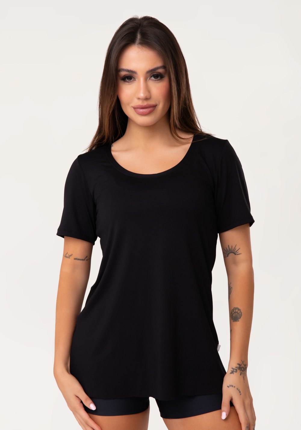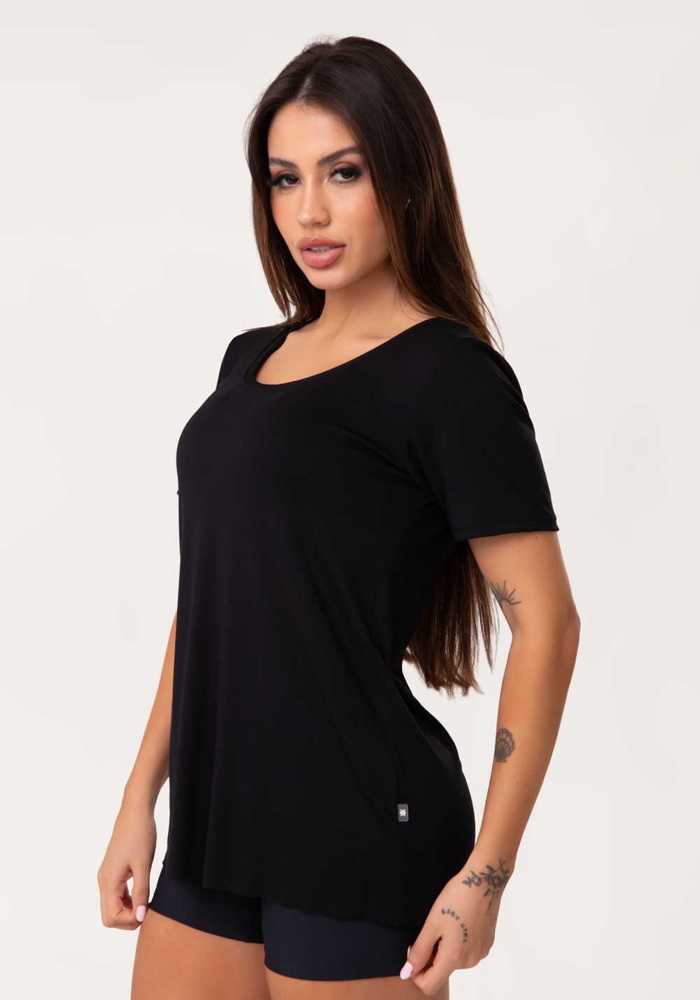 Seja para um look fitness moderno ou para composições casuais, a Blusa T-Shirt Fitness Preto é essencial no seu guarda-roupa. Com design clássico e modelagem soltinha, ela garante conforto, leveza e um caimento perfeito, ideal para acompanhar sua rotina com muito estilo.