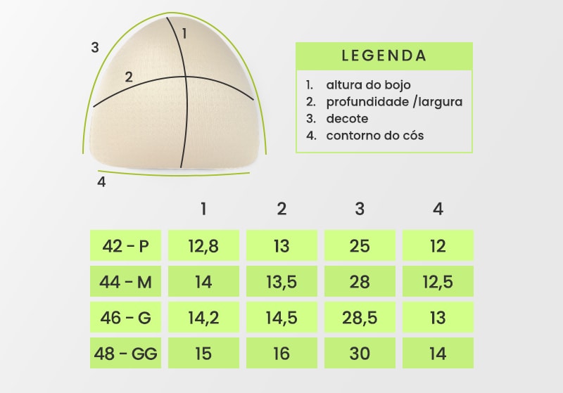 Insira o bojo na abertura interna da peça compatível, ajustando o posicionamento conforme necessário. Pode ser removido para higienização ou substituição sem alterar a estrutura do produto.