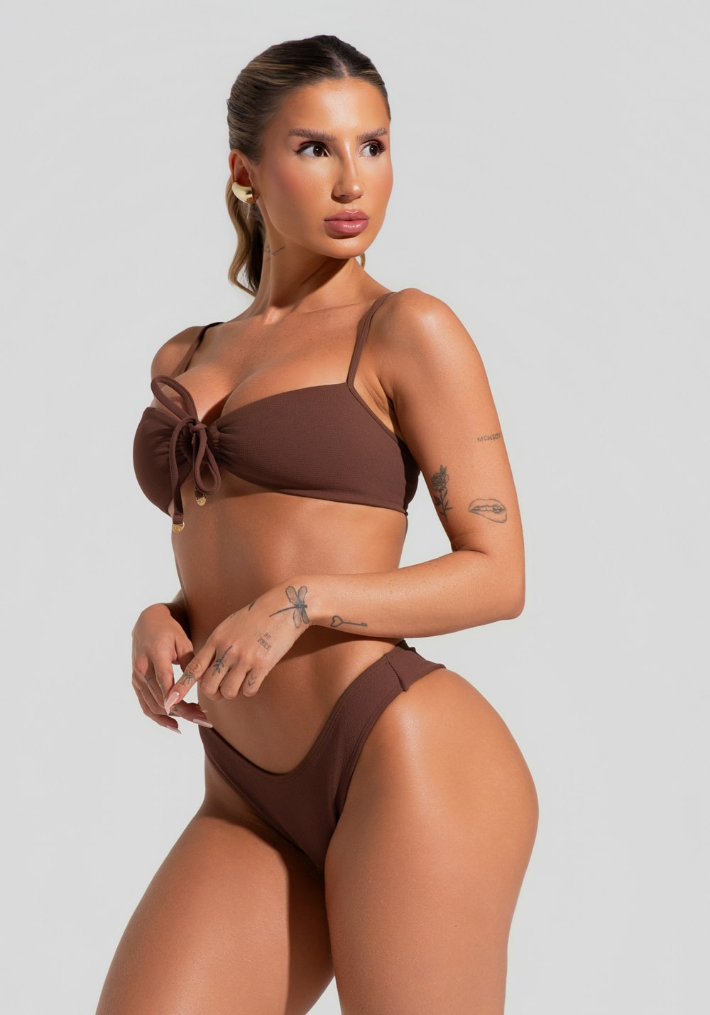Com laterais levemente mais altas, esta calcinha de biquíni marrom tem modelagem inspirada no estilo asa delta. Confeccionada em tecido de poliamida com textura, conta com proteção solar UV 50+ e forro.