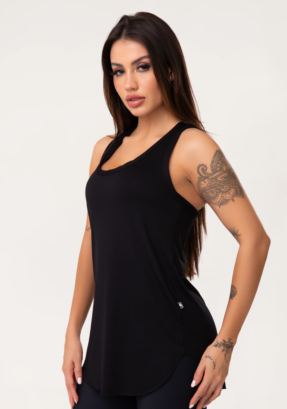 Seja para um look fitness moderno ou para composições casuais, a Camiseta Fitness Preto é essencial no seu guarda-roupa. Com design alongado, modelagem soltinha e costas estilo nadador, ela garante conforto, leveza e um caimento perfeito, ideal para acompanhar sua rotina com muito estilo.