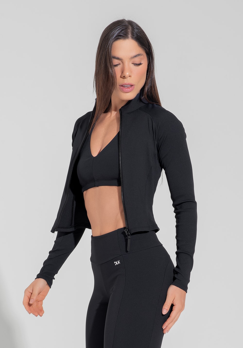 Casaco fitness feminino com detalhe canelado motion lines dlk preto