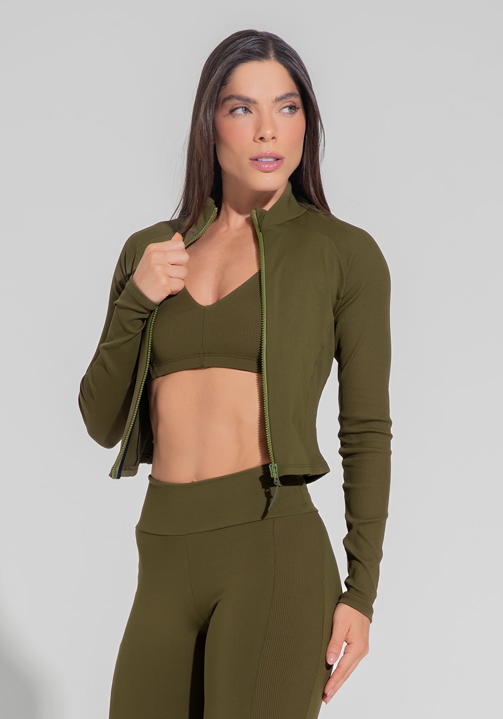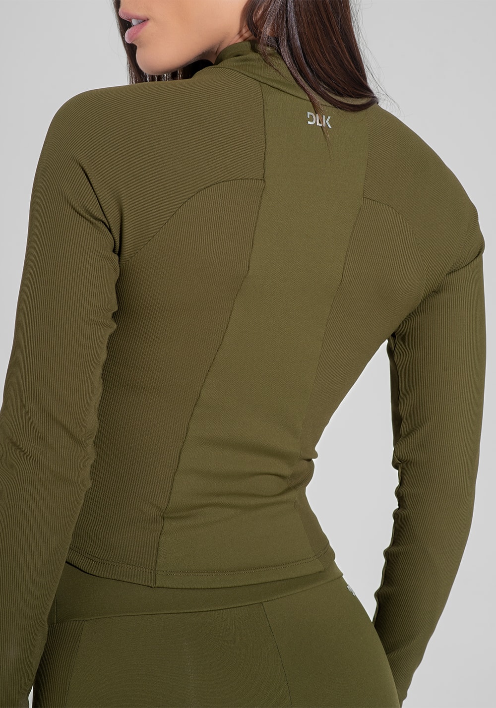 Casaco fitness feminino com detalhe canelado motion lines dlk verde oliva