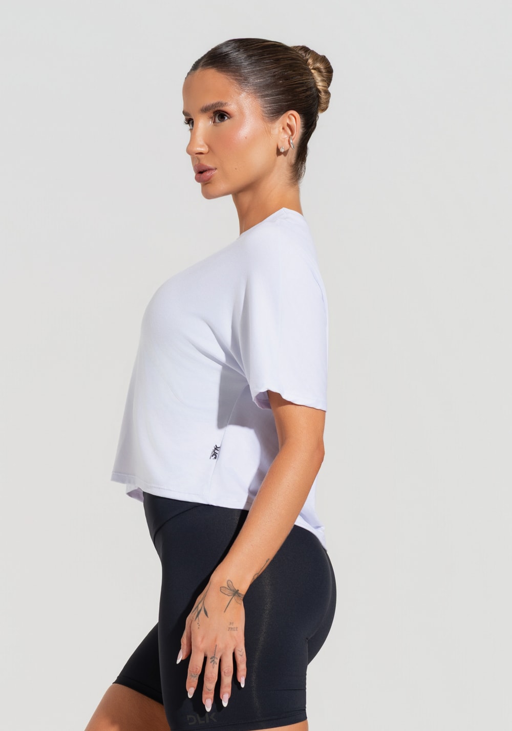 - Modelagem ampla com comprimento cropped, que valoriza o corpo com leveza