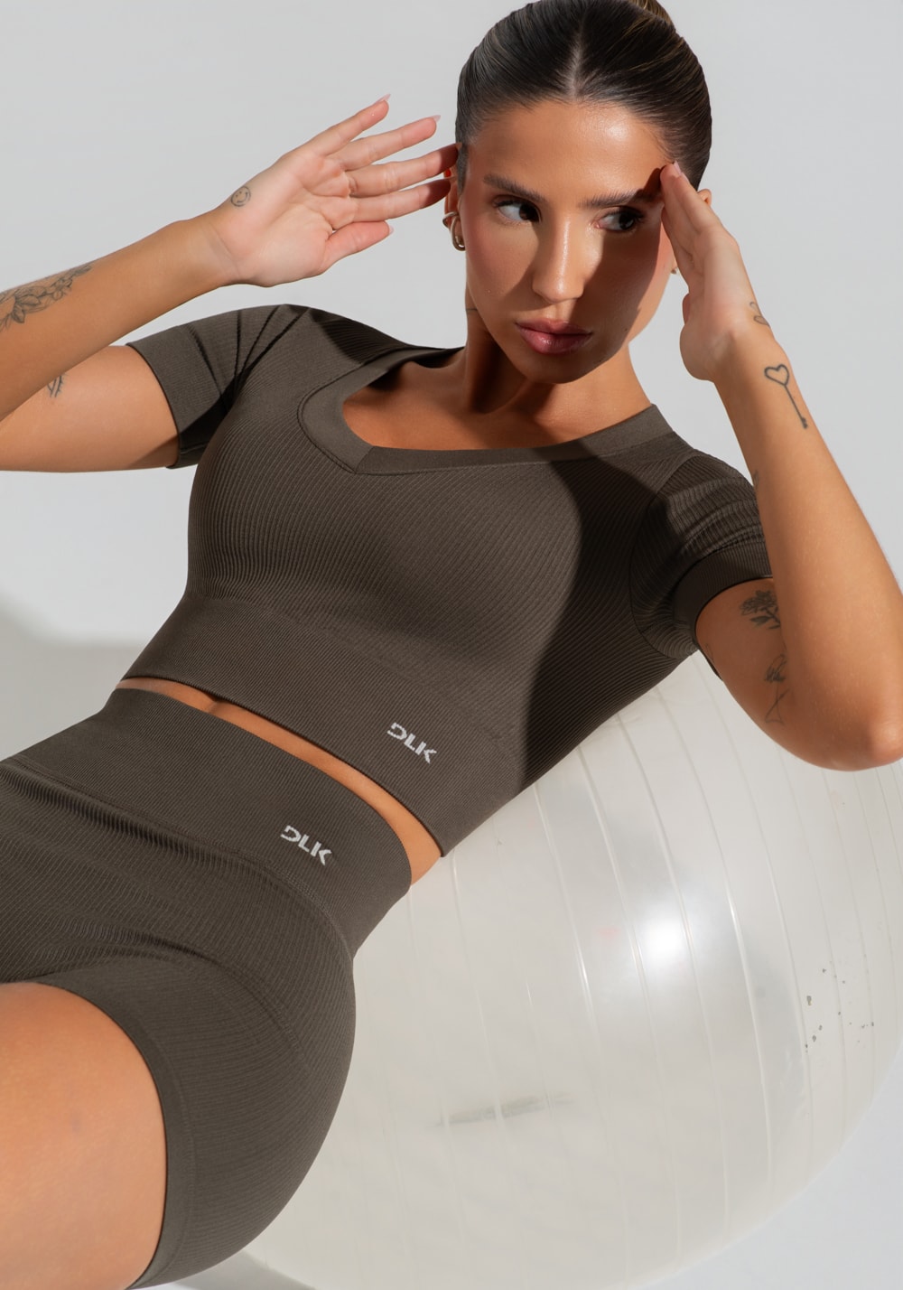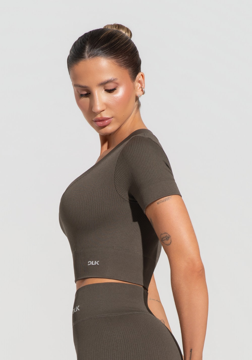 Confeccionado em poliamida, o tecido canelado oferece compressão leve e toque suave, além de excelente elasticidade e respirabilidade.