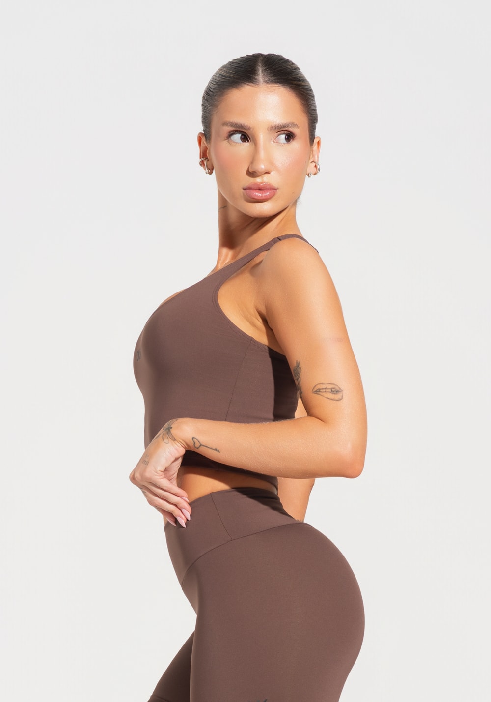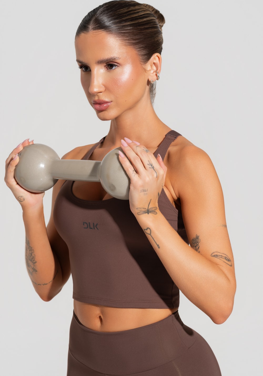 Cropped fitness feminino com alças reguláveis soul dlk marrom