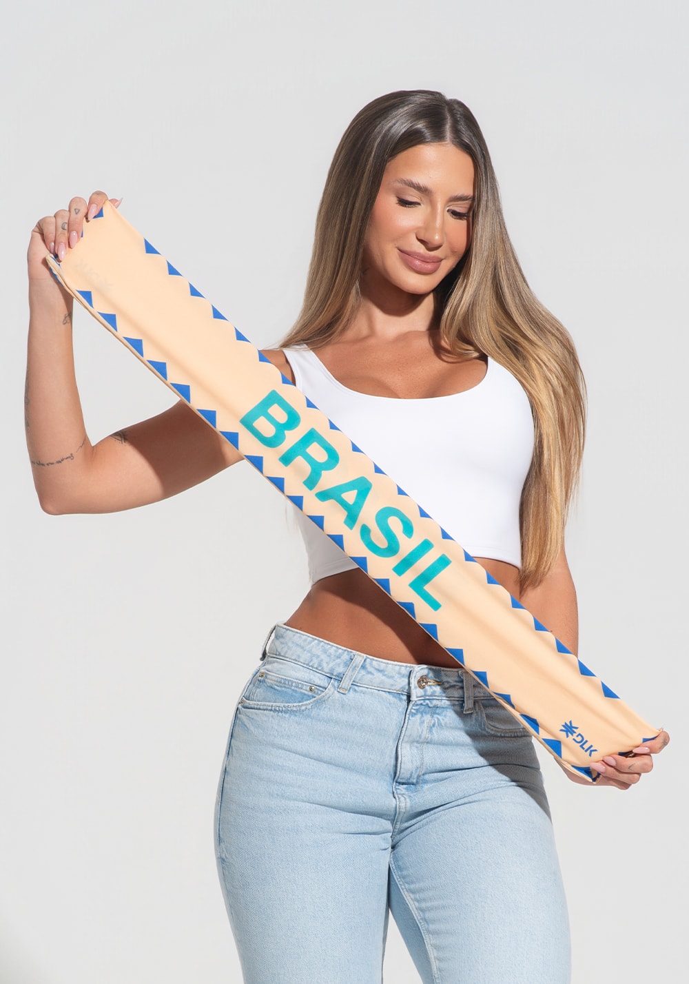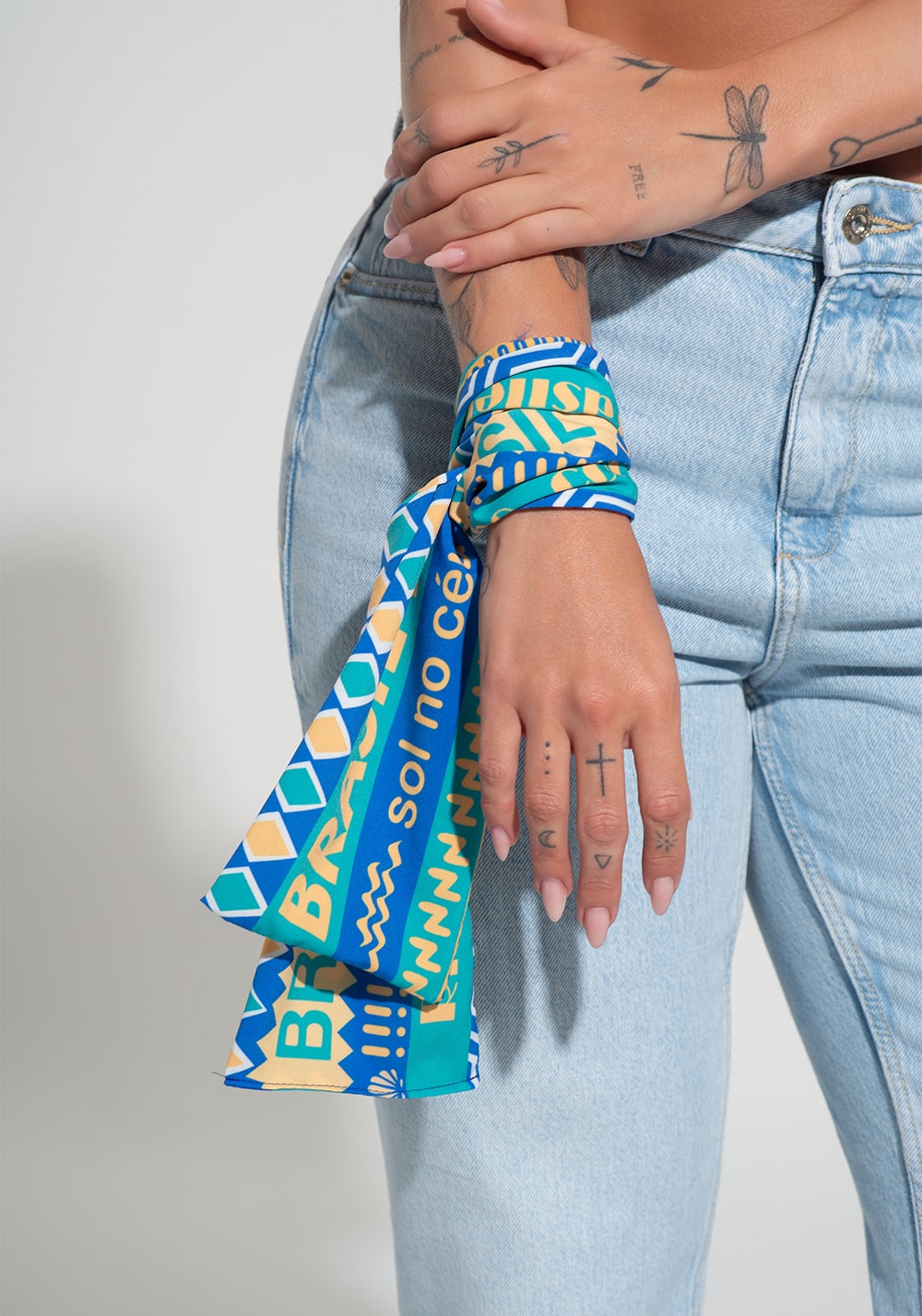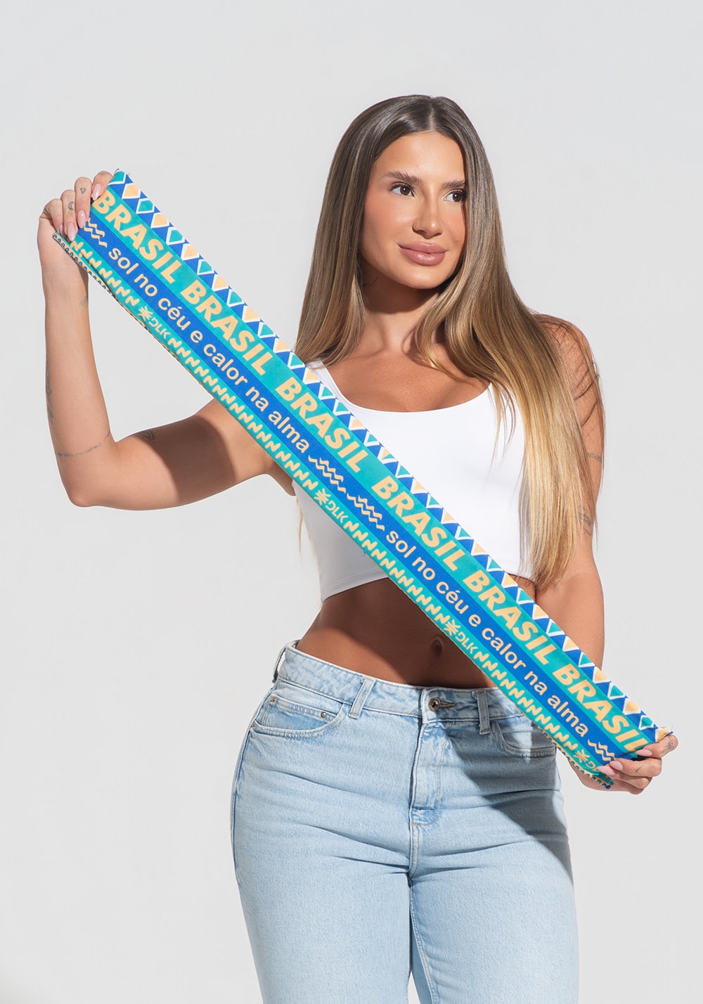 Use no cabelo, no chapéu, como faixa, no pescoço, como top com até amarrado na bolsa. Também pode virar acessório de torcida ou complementar looks para a copa com muita personalidade e estilo.