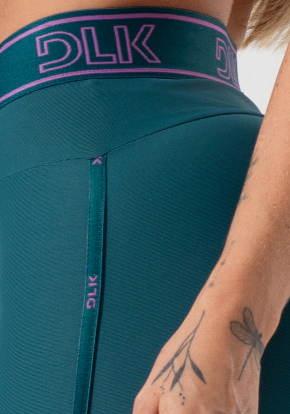 Com tecido de poliamida, essa legging verde une elasticidade, compressão média e conforto térmico. Os elásticos personalizados aplicados no cós e nas laterais criam um visual autêntico e garantem sustentação.