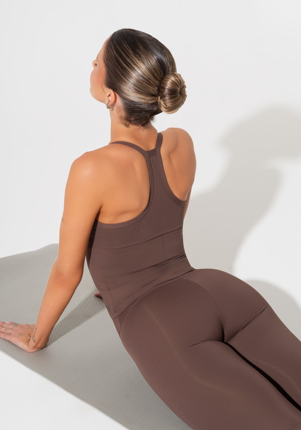 A legging marrom é o tipo de peça que traduz o propósito da coleção: básico em movimento. Com modelagem justa, cós anatômico e compressão média, ela se adapta ao corpo sem apertar, acompanhando com suavidade todos os tipos de treino. O toque do tecido é macio e firme ao mesmo tempo, com durabilidade para fazer parte da sua rotina por muito tempo.