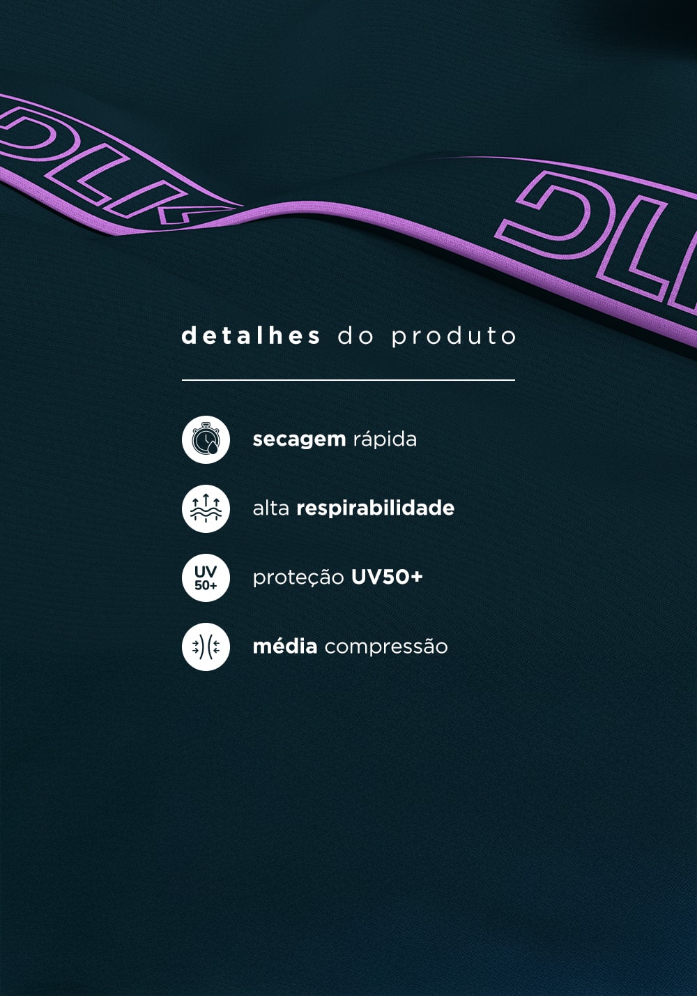 - Tecido de poliamida com elasticidade, conforto e proteção UV