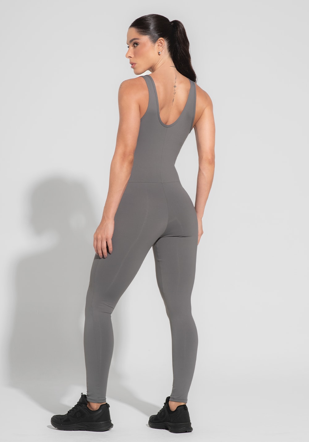 O macacão básico oferece compressão média e ajuste firme, auxiliando na estabilidade durante exercícios dinâmicos. A modelagem com recortes laterais contribui para melhor adaptação da peça ao corpo durante a execução dos movimentos.