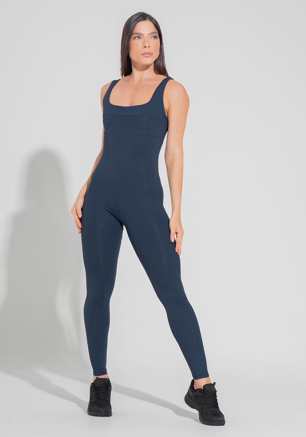Macacão fitness feminino com detalhe canelado motion lines dlk azul marinho