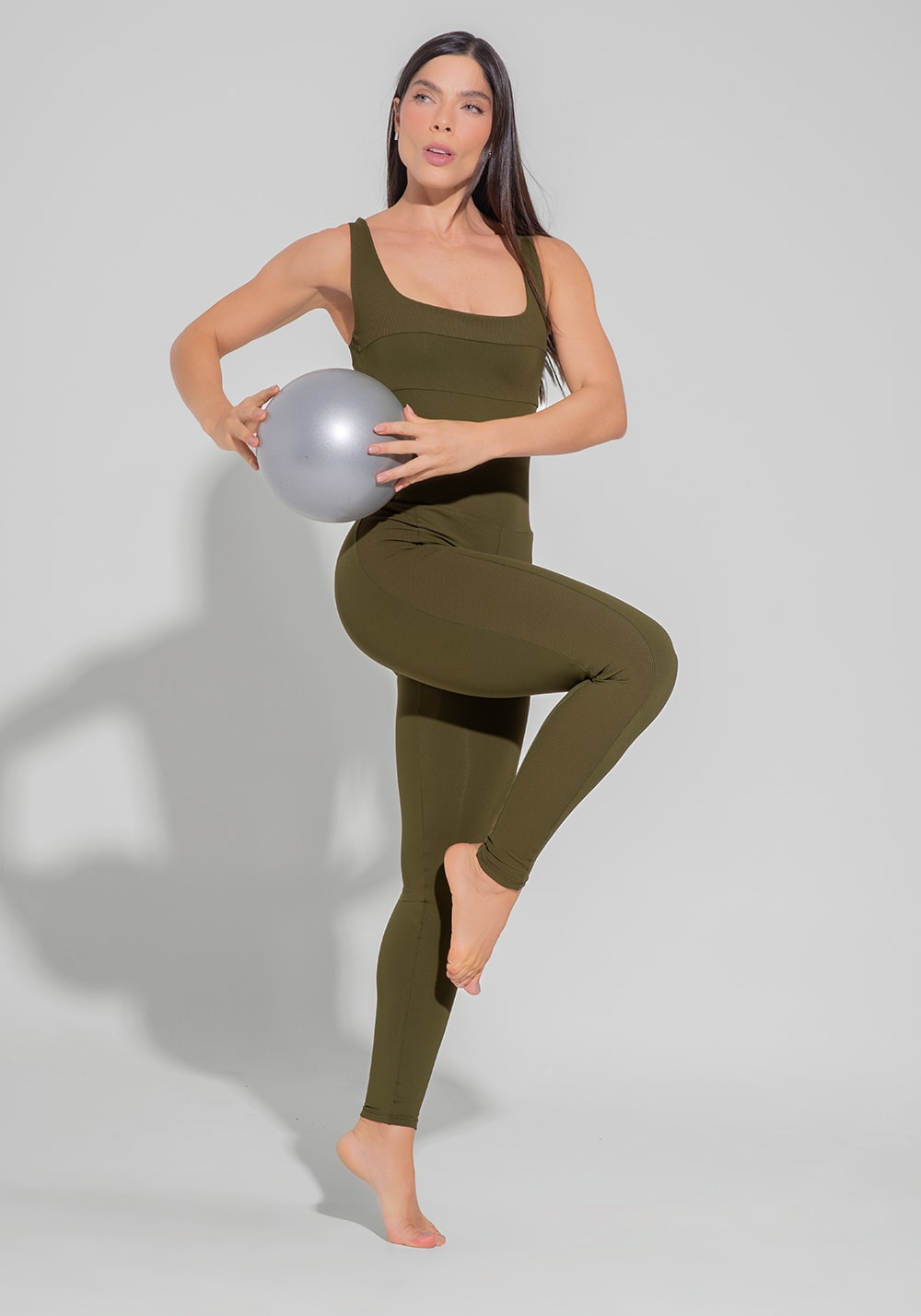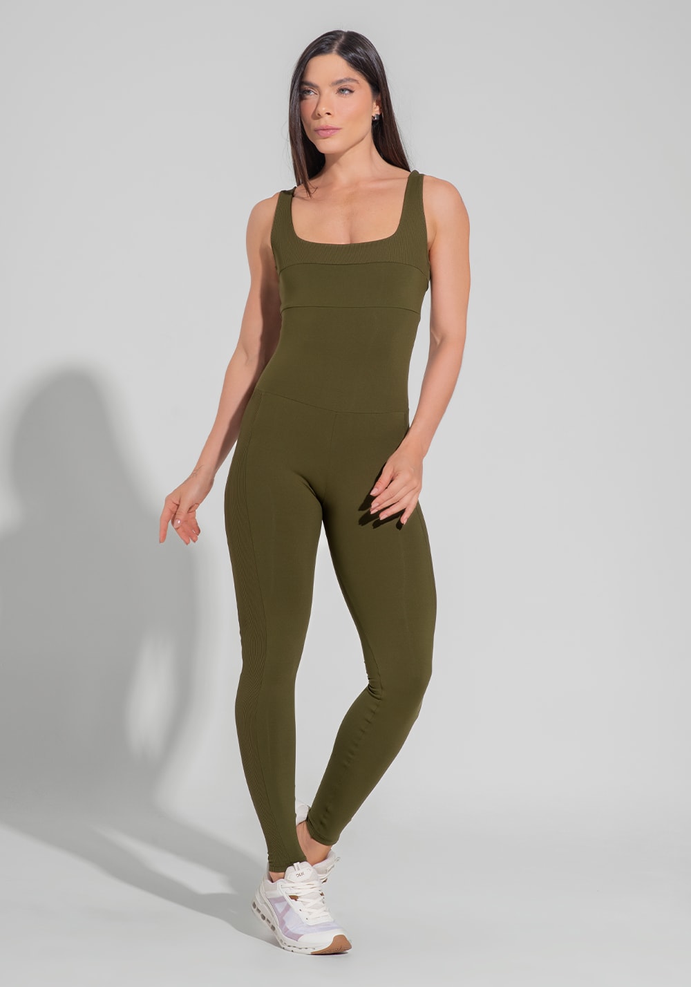 Macacão fitness feminino com detalhe canelado motion lines dlk verde oliva