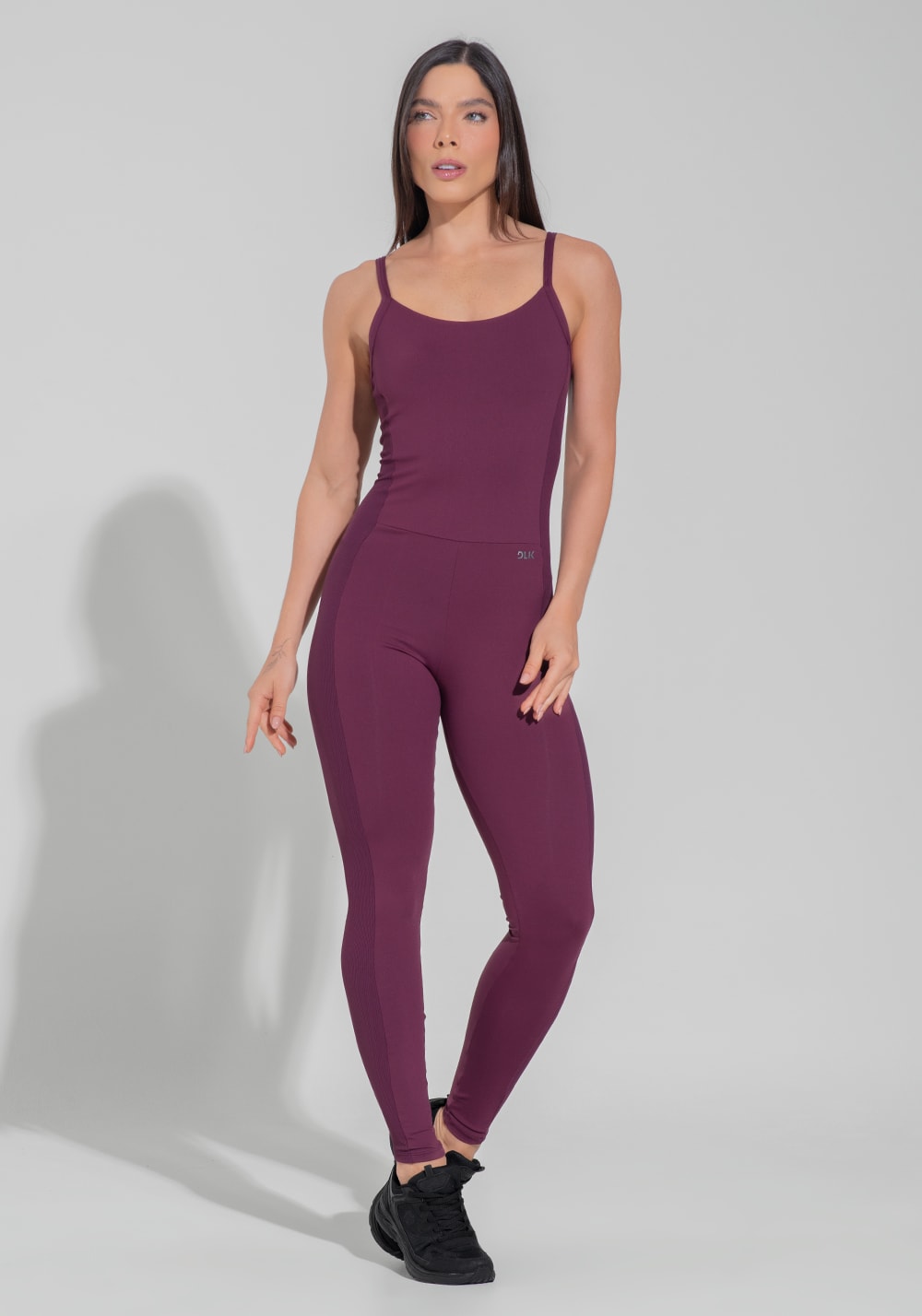 Macacão fitness feminino com lateral canelada motion lines dlk vinho