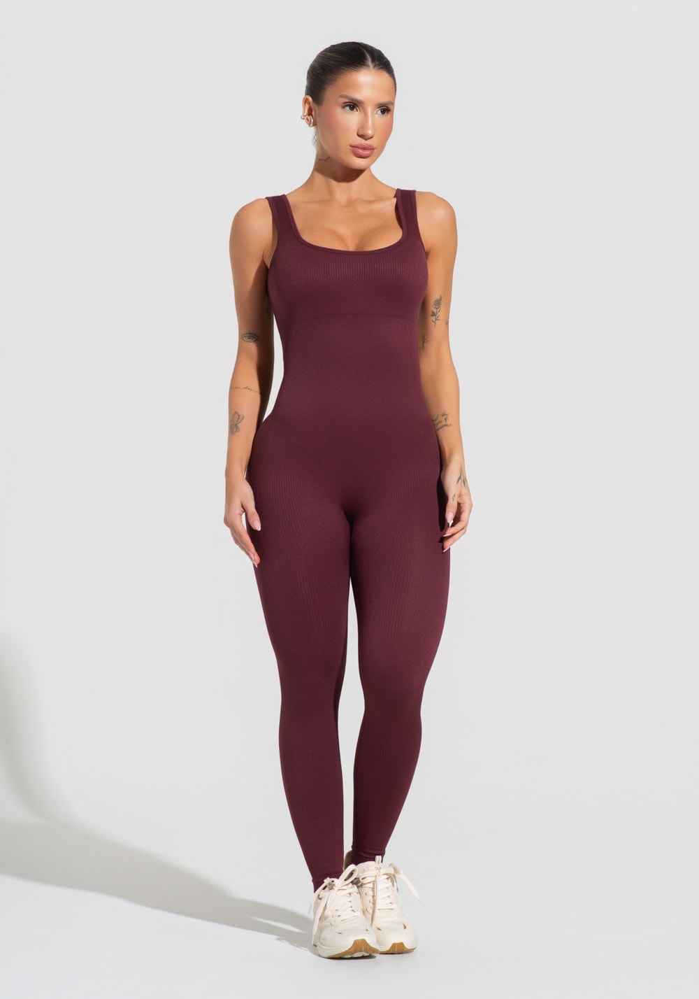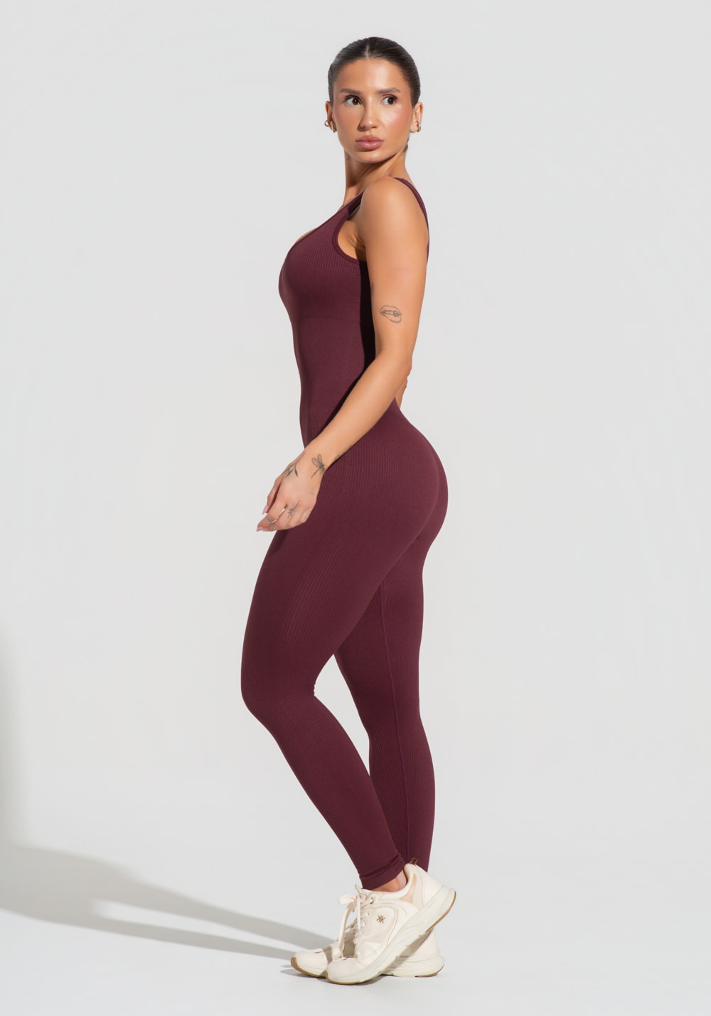 Macacão fitness feminino vinho canelado com bojo seamless+ dlk