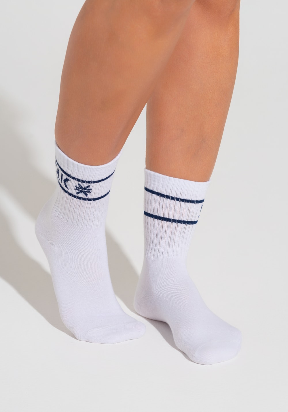 Meia feminina cano médio soul dlk branco com azul marinho