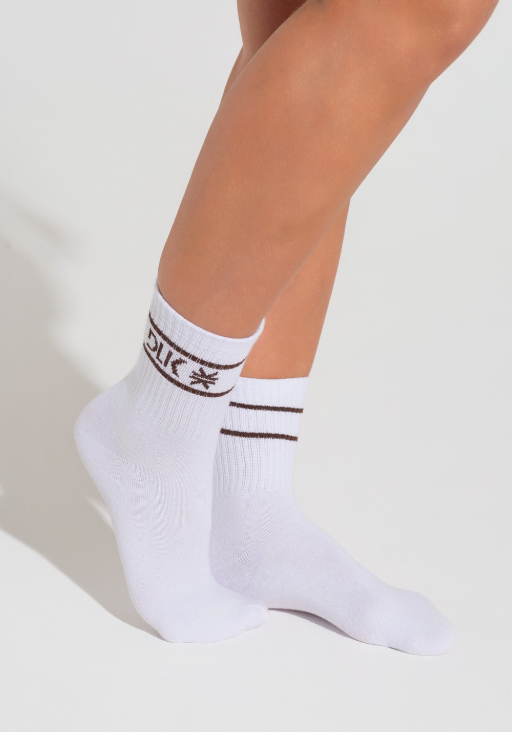 Meia feminina cano médio soul dlk branco com marrom
