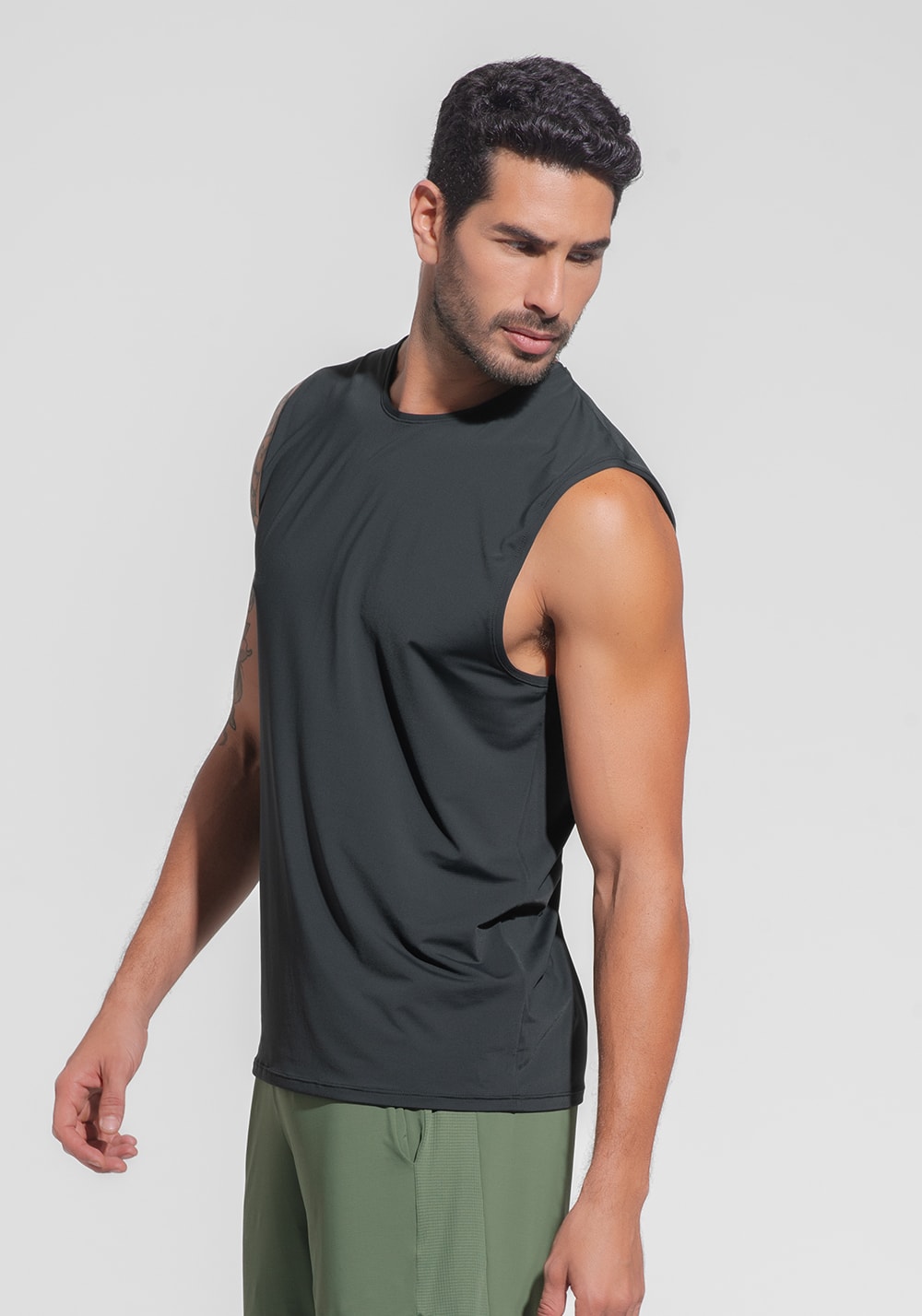 A regata masculina é feita em tecido de poliamida com toque gelado, secagem rápida e alta elasticidade. Sua modelagem reta com cavas amplas garante um caimento confortável, permitindo mais ventilação e mobilidade.