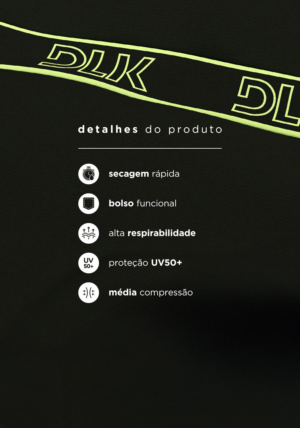 Ideal para treinos intensos, esse short preto combina tecido tecnológico com um design funcional. Possui bolsos laterais que garantem praticidade e cós com elástico personalizado DLK, que oferece ajuste seguro e confortável ao corpo.