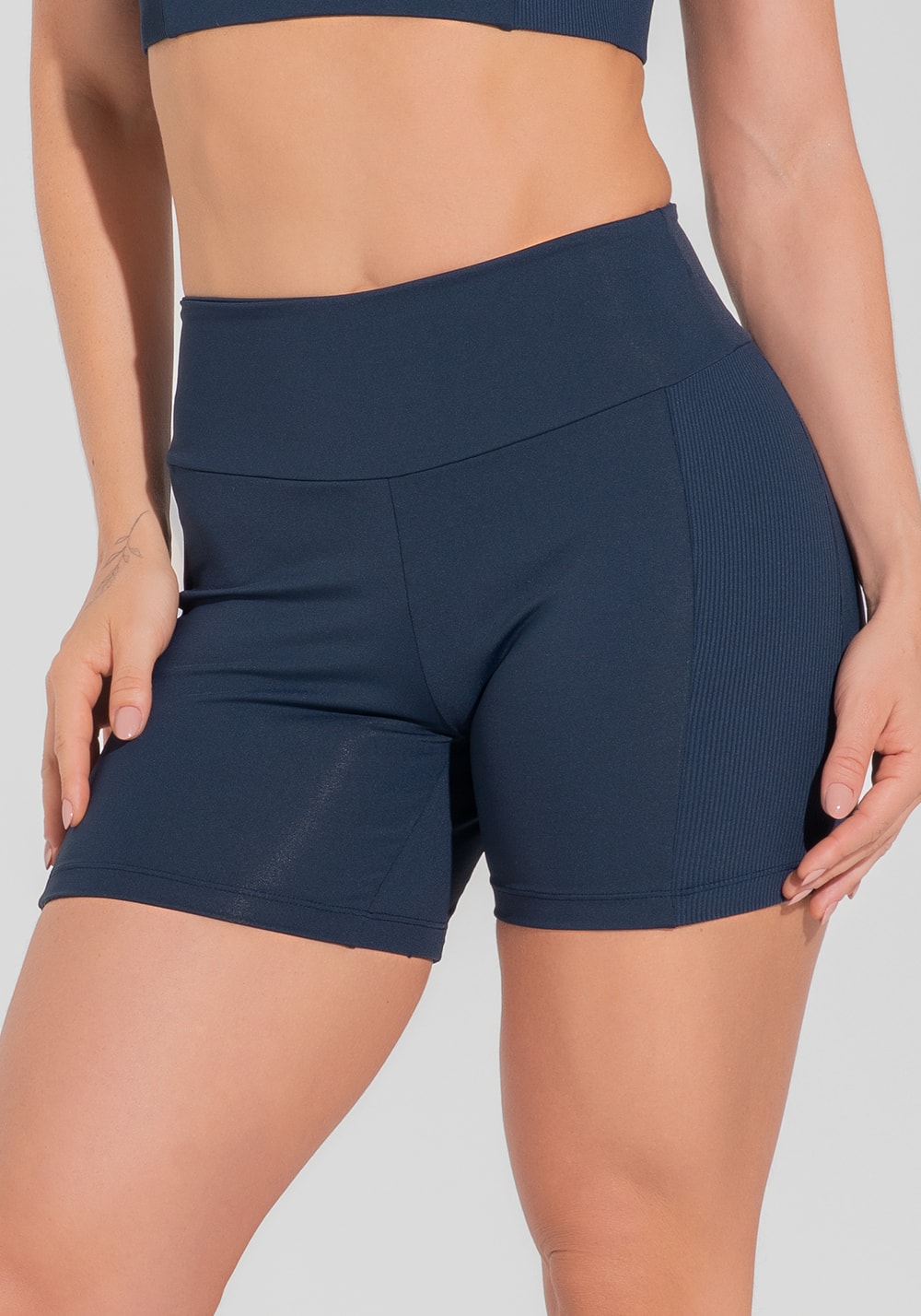 Short fitness feminino com lateral canelada motion lines dlk azul marinho