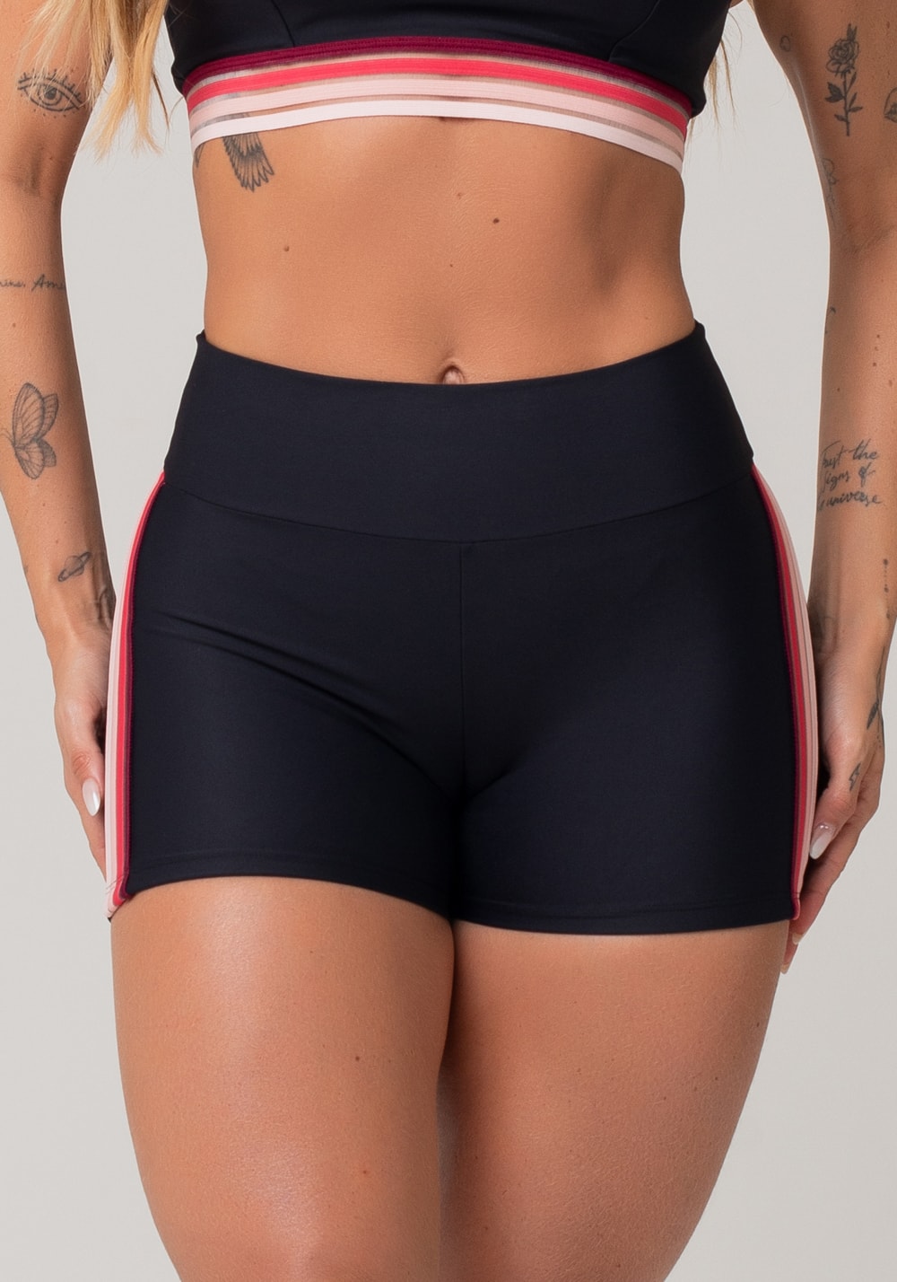 Short fitness feminino preto com elástico lateral degradê rosa nation dlk