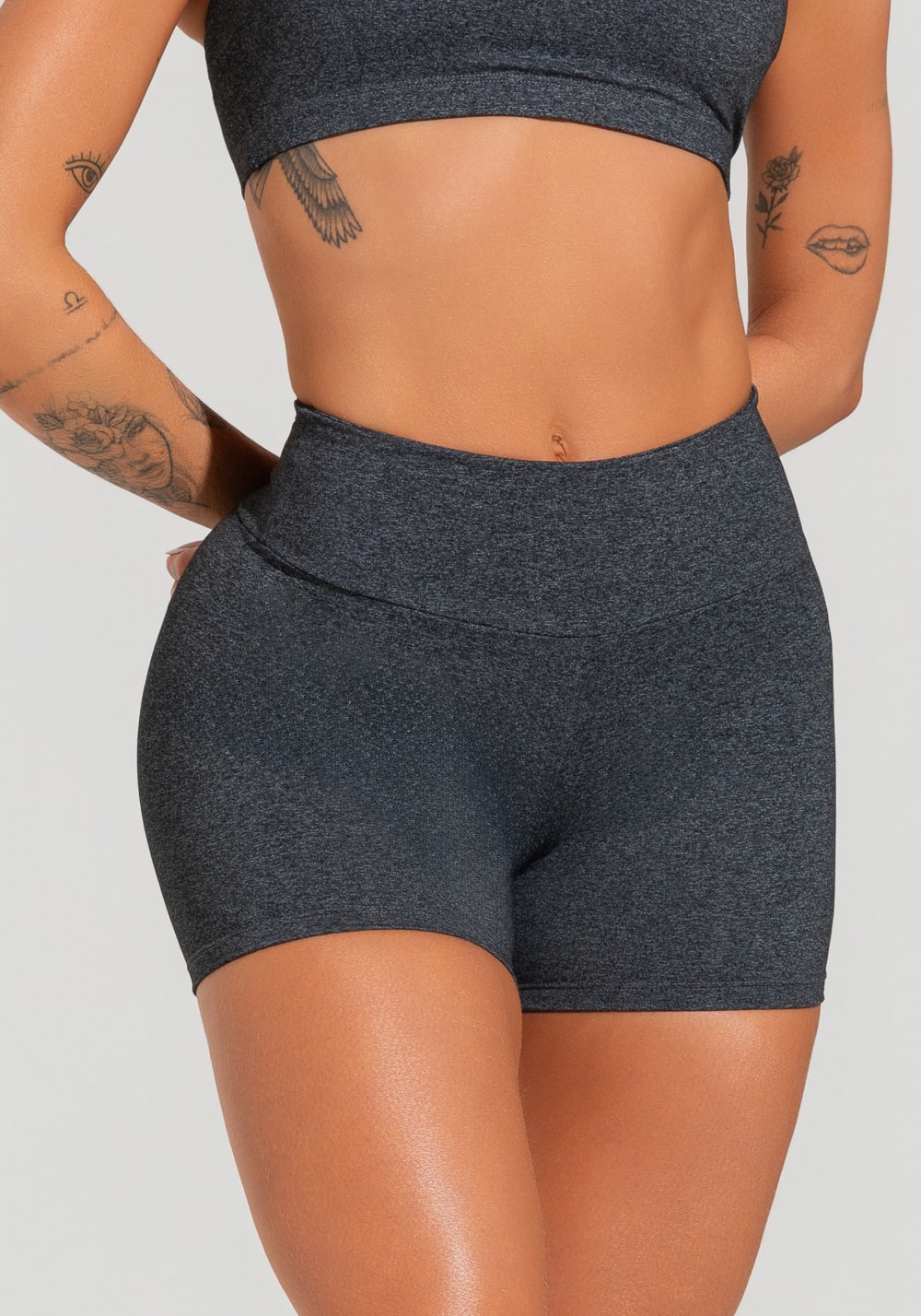 O short mescla é perfeito para quem busca bem-estar vestindo uma peça. O tecido tem toque macio e alta elasticidade, permitindo que você se mova com naturalidade. O cós anatômico envolve a cintura com firmeza sem apertar, criando uma sensação de leve sustentação.