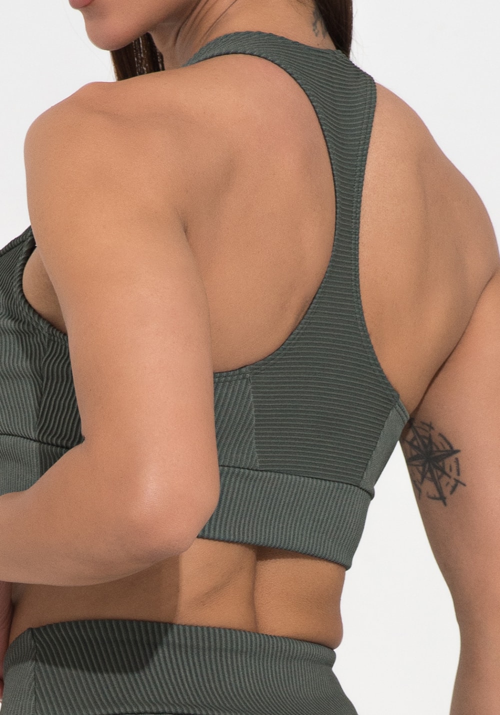 Esse Top Fitness Feminino possui modelagem moderna e atemporal, fazendo com que seja sua opção ideal a qualquer momento do dia. As alças largas e costas em modelo nadador garantem firmeza e segurança para você realizar os movimentos sem preocupações. Seu tom esverdeado, com tecido canelado e design clássico trazem muita elegância, estilo e conforto à peça.