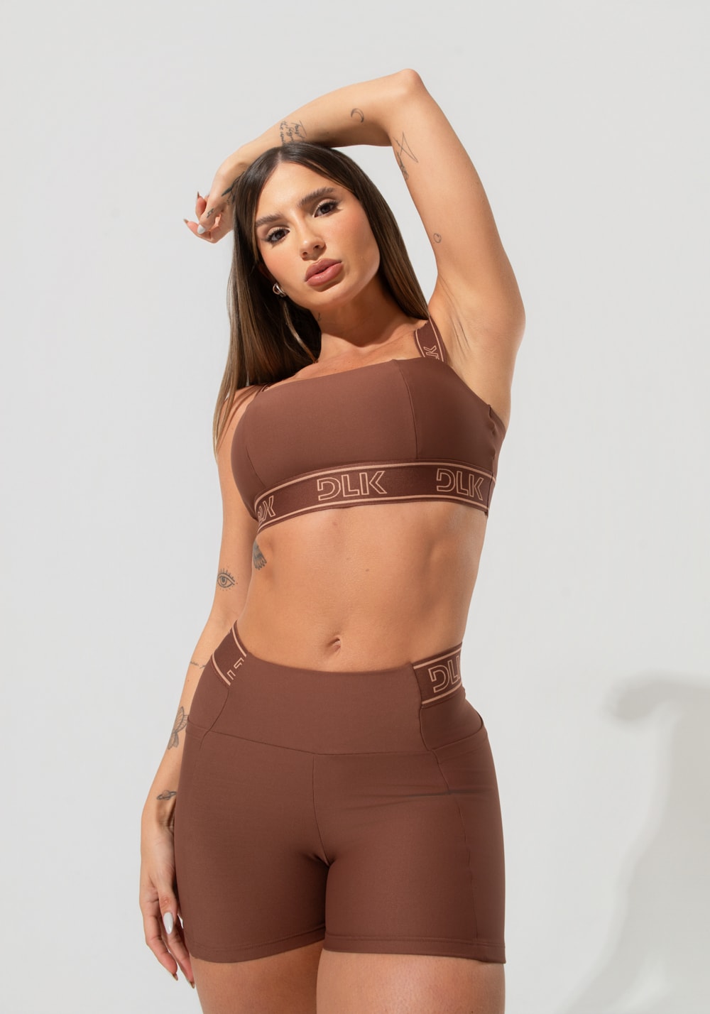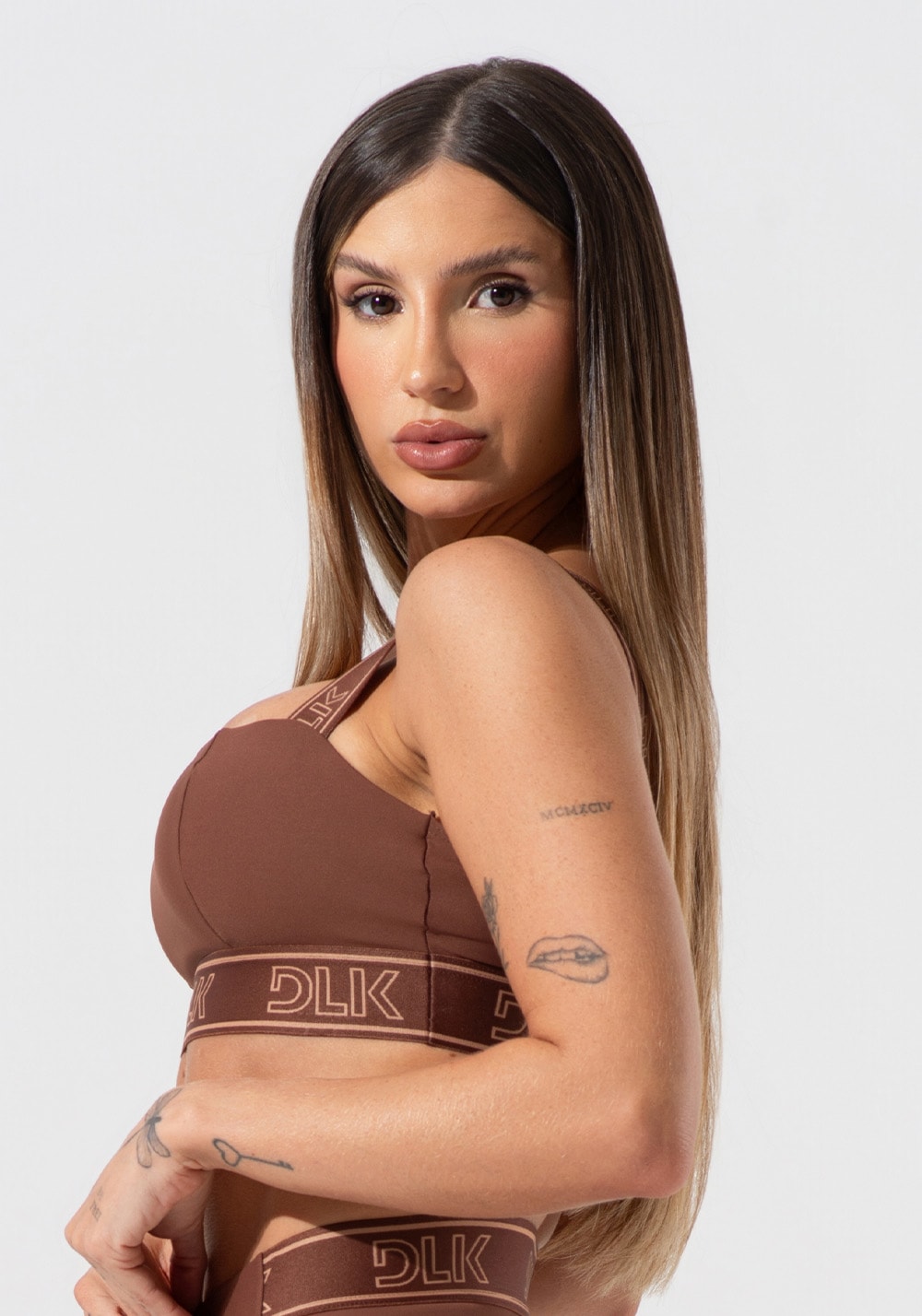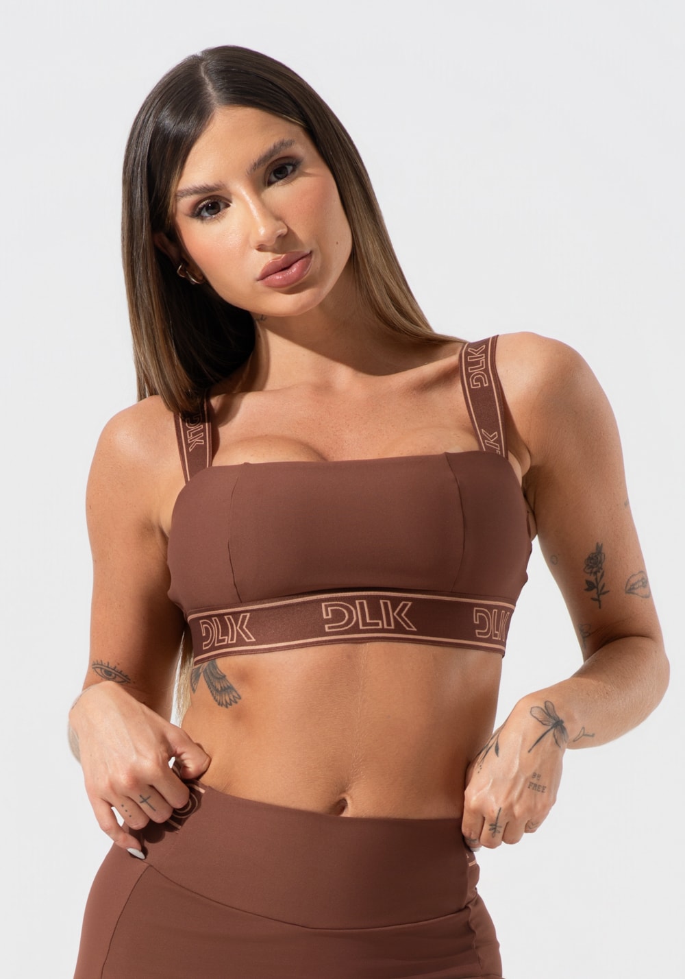 Esse top marrom une bojo removível, alças largas em elástico personalizado e base firme. O tecido garante secagem rápida e elasticidade ideal, tornando-o perfeito para musculação, funcional ou treinos ao ar livre.