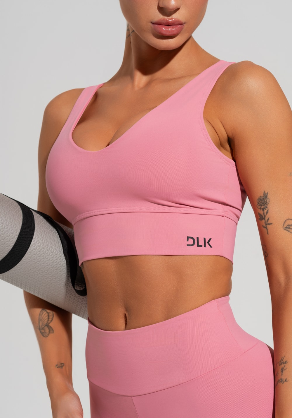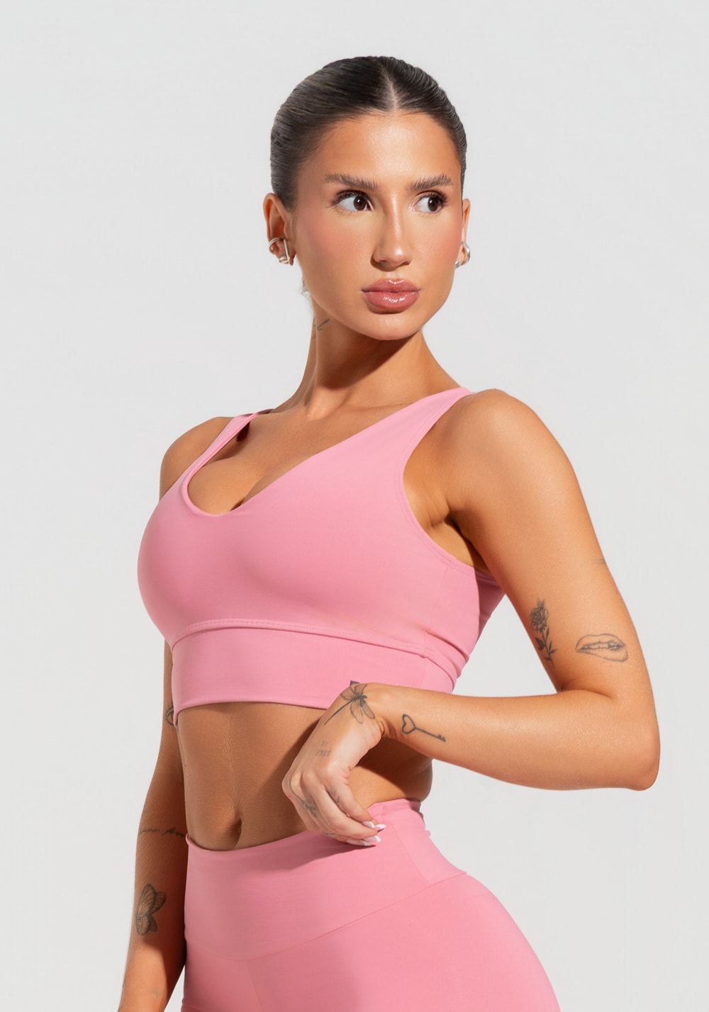 O top com decote V valoriza o colo com elegância e suavidade. Feito em poliamida de toque macio e boa elasticidade, ele traz segurança para a prática de atividades físicas com sustentação que respeita o corpo. Seu design proporciona um visual moderno e feminino, sem abrir mão da funcionalidade.