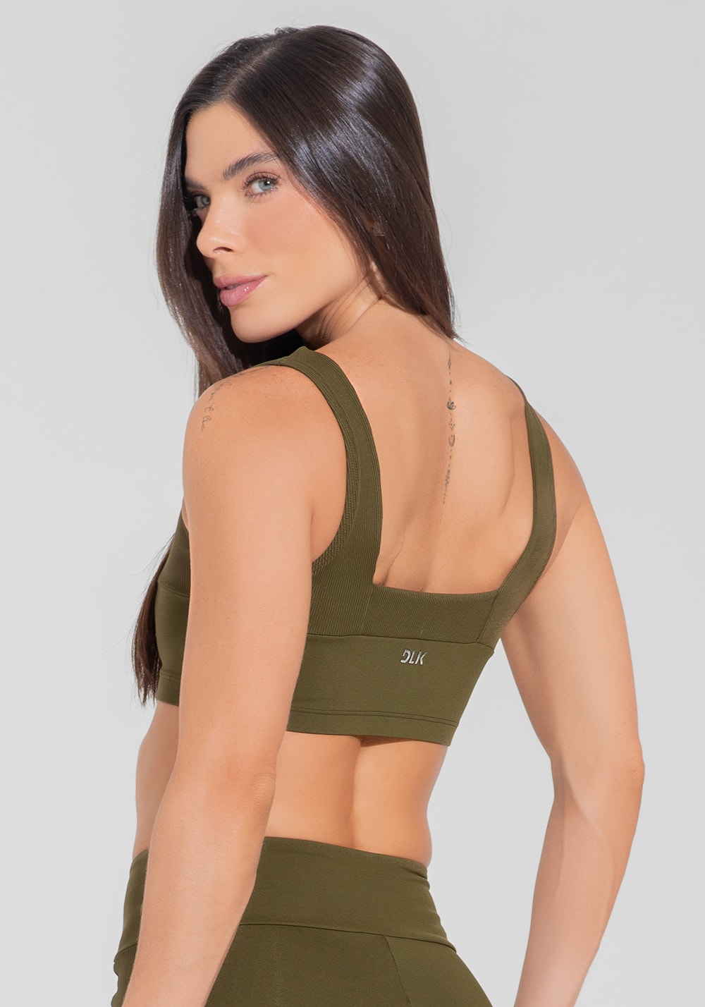 Top fitness feminino decote quadrado com detalhe canelado motion lines dlk verde oliva