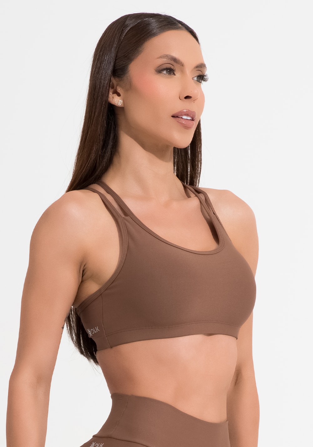 O Top Marrom de Alça Dupla traz design moderno e alta performance para os seus treinos. Com alças duplas cruzadas, ele proporciona sustentação e firmeza, enquanto o tecido de poliamida garante conforto, elasticidade e respirabilidade.