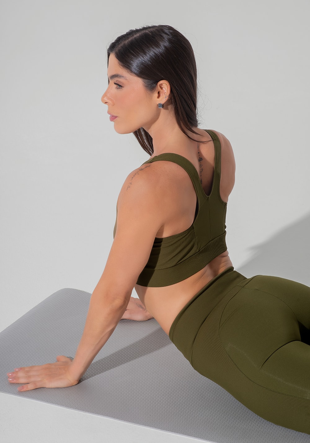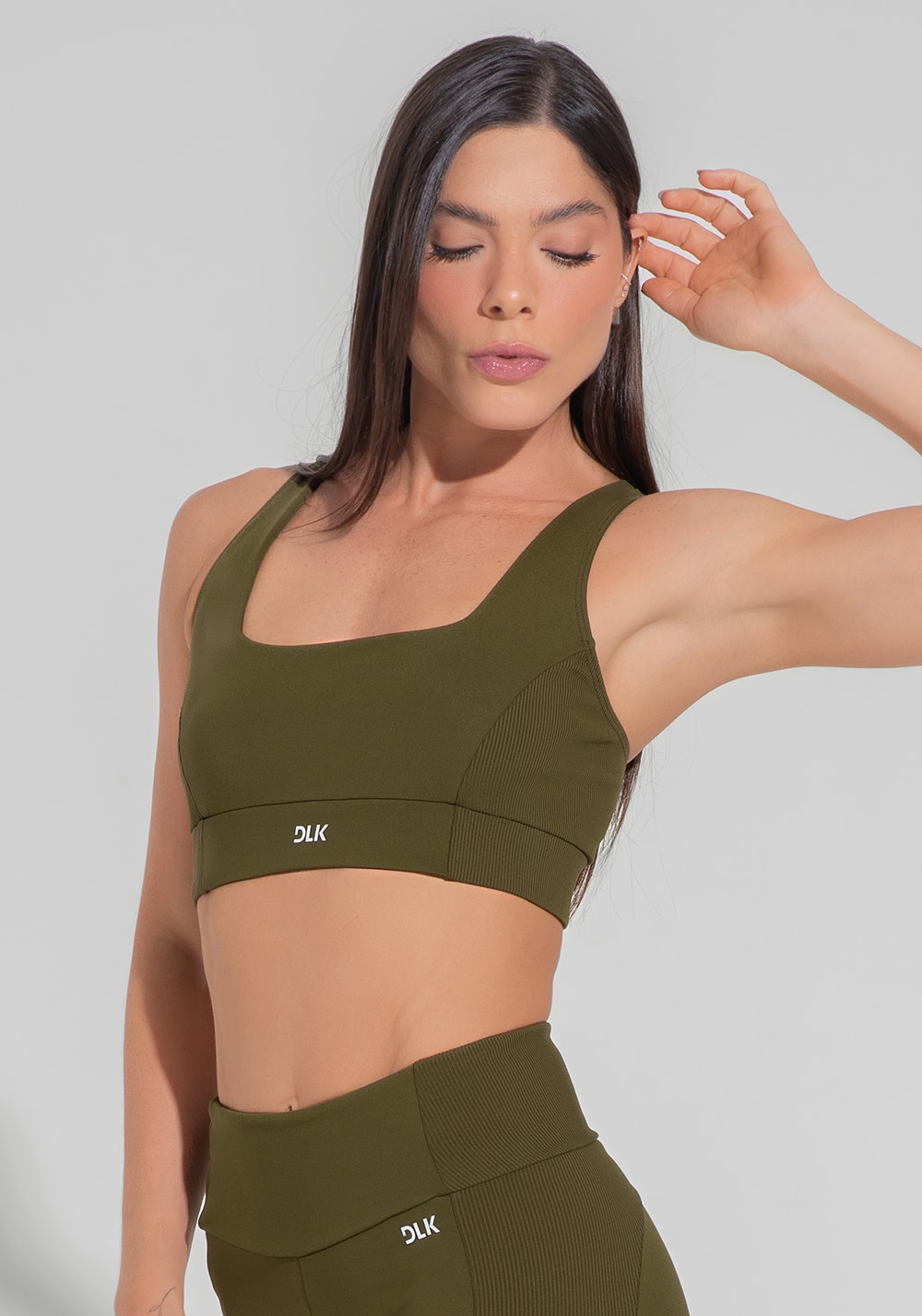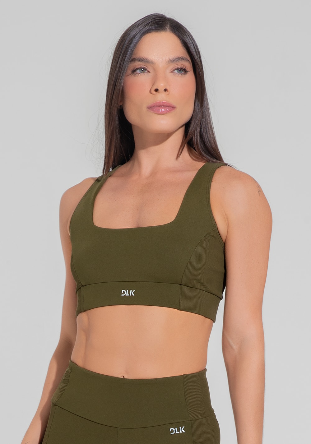 Top fitness feminino nadador anatômico com detalhe canelado motion lines dlk verde oliva