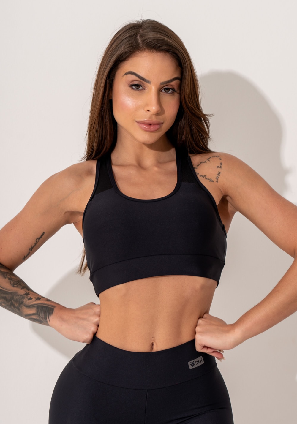 Uma junção da modelagem clássica com o tecido em poliamida de alta qualidade, o Top Fitness Feminino Nadador Preto Com Recortes Em Tela Intense é a peça chave para seus treinos intensos. Seu toque extramacio promove muito conforto e elasticidade, enquanto as costas modelo nadador e os recortes em tela garantem firmeza em seus movimentos de impacto.