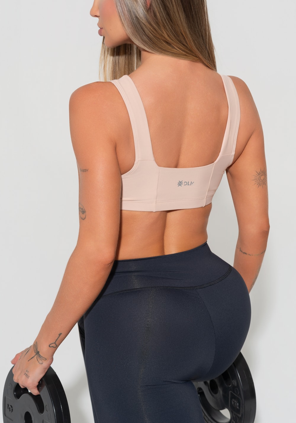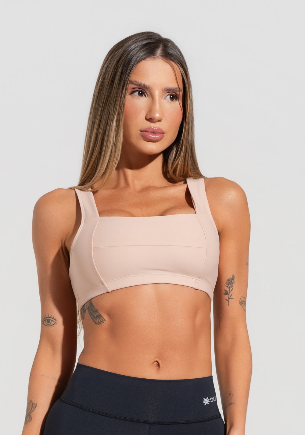 Com visual clássico e modelagem funcional, esse top combina estilo com alta performance. O decote reto e as alças largas garantem sustentação nos movimentos, enquanto os recortes estratégicos valorizam o busto com discrição e charme.