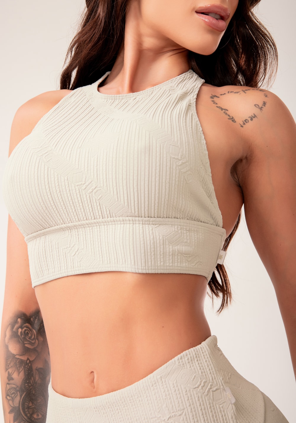 O Top Fitness Feminino Oliva Decote Alto foi projetado para mulheres que buscam sofisticação e conforto em cada movimento. O decote alto e seu toque texturizado adicionam um ar de modernidade, enquanto o design nas costas oferece uma opção leve e estilosa. A tonalidade oliva evoca uma combinação única de tranquilidade e força, tornando-o ideal para combinações elegantes, seja para o treino ou para momentos casuais.