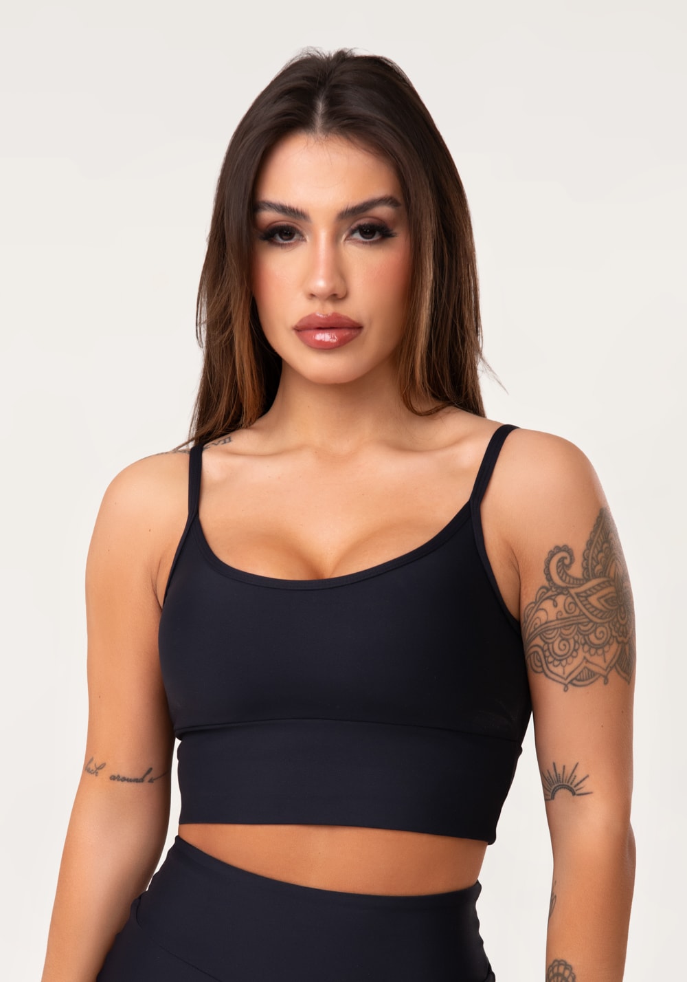 Encontre a leveza e a fluidez nos movimentos com o Top Fitness Preto Com Bojo. Este top fitness combina design clássico e moderno, oferecendo elegância e funcionalidade. Seu ajuste perfeito proporciona muito conforto, tornando-o ideal para treinos intensos. A modelagem com alças finas garante decote delicado, enquanto o cós largo e o bojo removível proporcionam suporte e segurança em todos os movimentos.