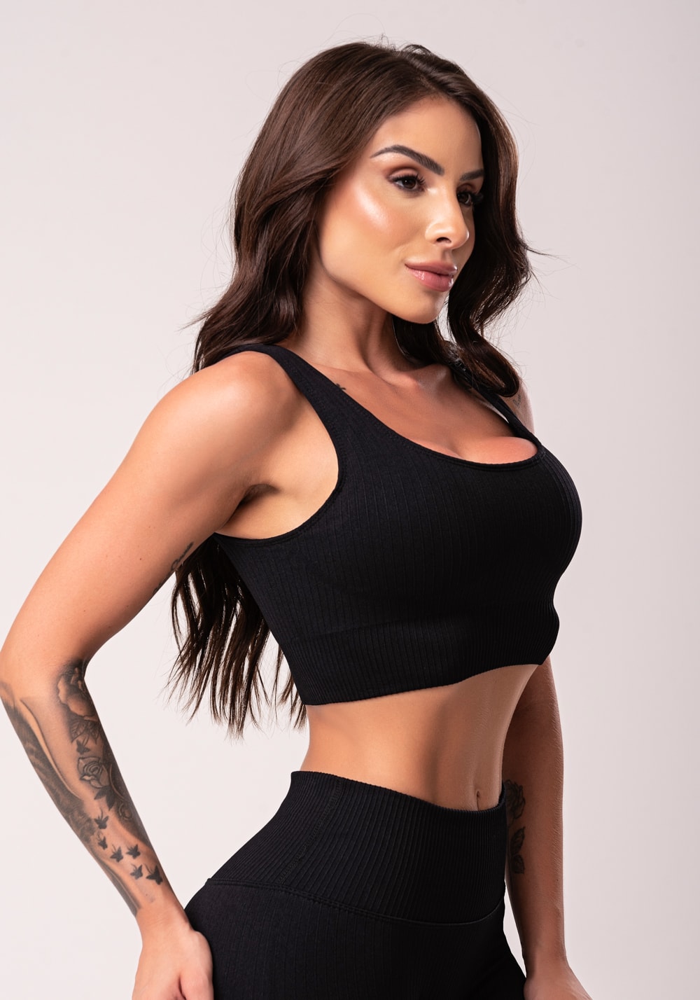 Liberte-se para alcançar seus objetivos fitness com o Top Com Bojo Preto. Confeccionado em tecido com textura canelada e toque macio, essa peça é a escolha ideal para quem busca liberdade de movimentos durante as atividades físicas. A tecnologia Seamless, sem costura visível, elimina zonas de fricção, garantindo conforto incomparável e um visual limpo. Experimente uma sensação única de leveza enquanto você se move, sem restrições.