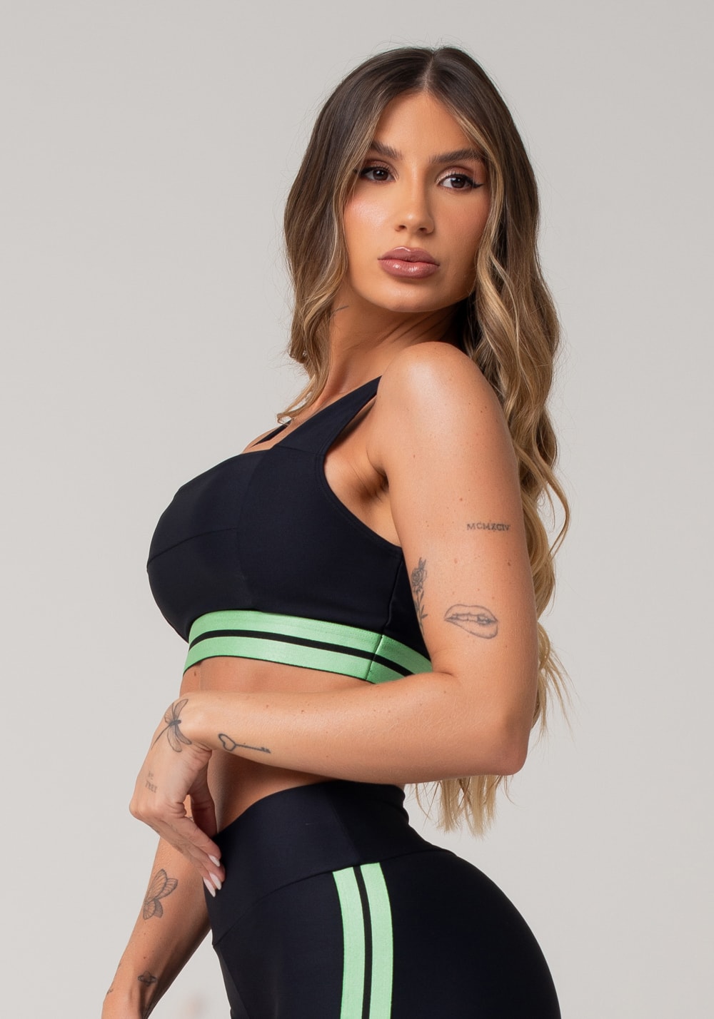 Este Top Fitness Com Elástico Listrado Verde foi desenvolvido com tecido de alta elasticidade e que se ajusta perfeitamente ao corpo, proporcionando mais flexibilidade e liberdade de movimentos. Ideal para quem busca conforto sem abrir mão do estilo, seja na academia ou no dia a dia.