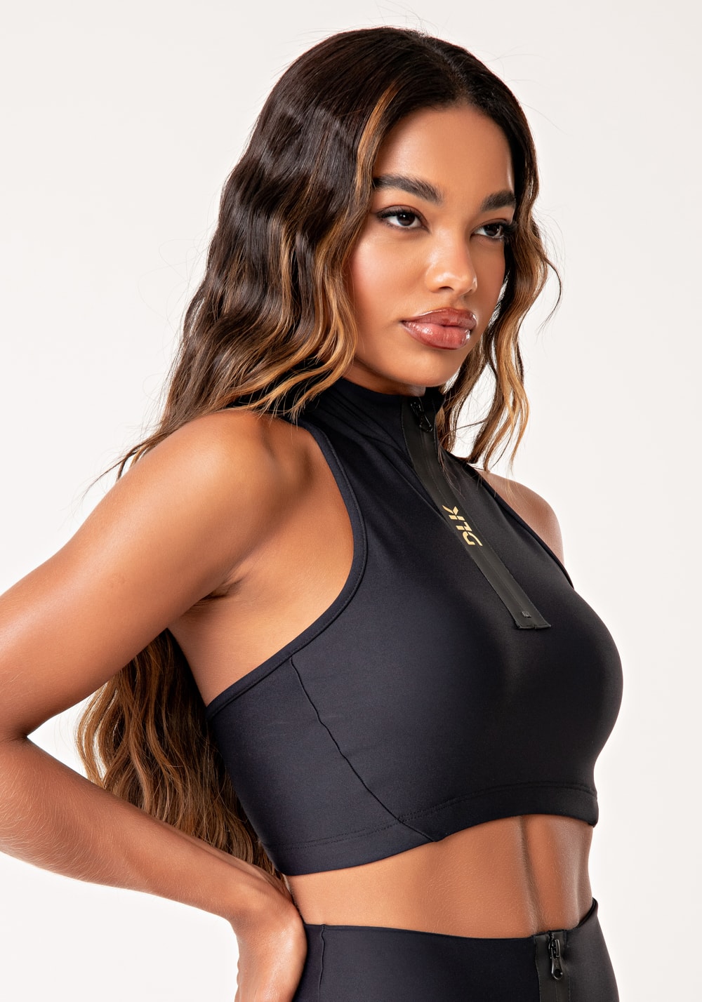 Transforme o seu look com o Top Preto Com Zíper Emborrachado. Com design elegante, ele possui gola alta e zíper emborrachado, que garante praticidade para vestir e charme extra à peça. Este top é ideal para os seus treinos ou para composições casuais sofisticadas.
