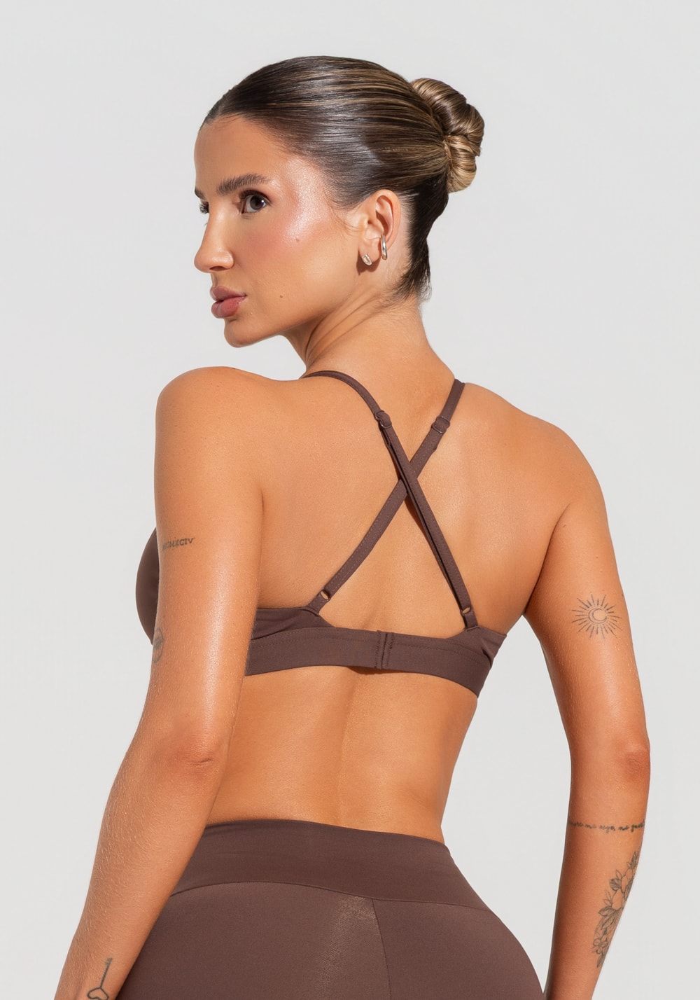 Top fitness feminino triângulo com alças reguláveis soul dlk marrom