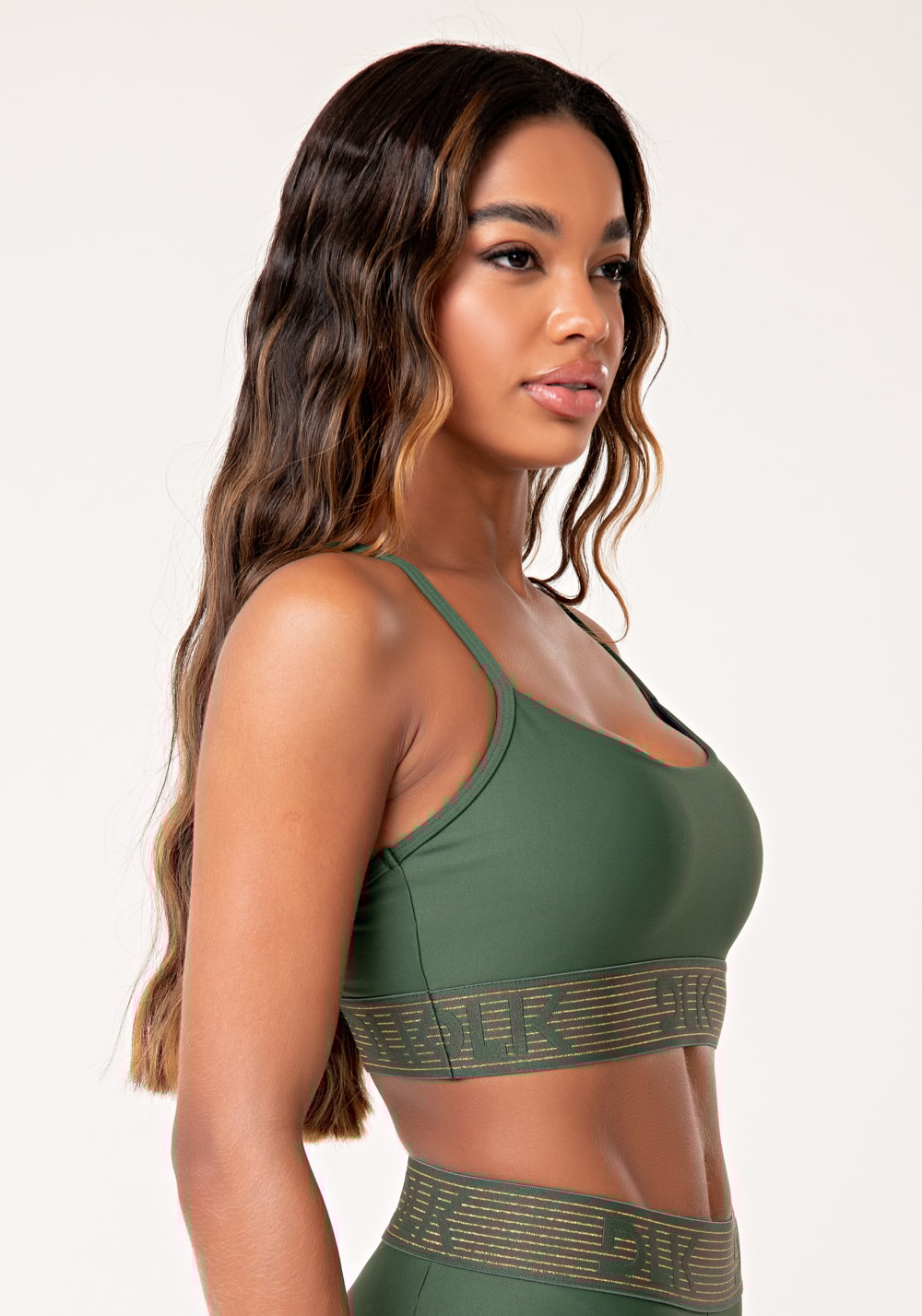 Transforme o seu look de treino com o Top Verde Com Bojo E Elástico DLK Lurex. Ele possui costas em modelo nadador, que permite muita liberdade de movimento, bojo removível e elástico personalizado com detalhe em lurex, adicionando um brilho elegante e sutil ao look. Este top é a escolha certa para você se sentir confiante e confortável em treinos intensos.