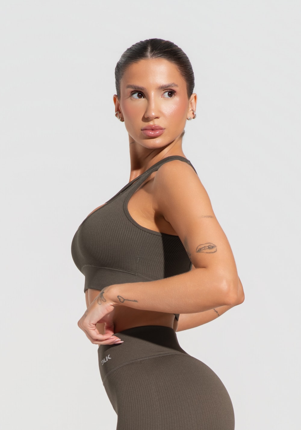 Feito em tecido canelado e com bojo removível, ele se adapta ao corpo com boa compressão, ideal para você se movimentar com liberdade e estilo.