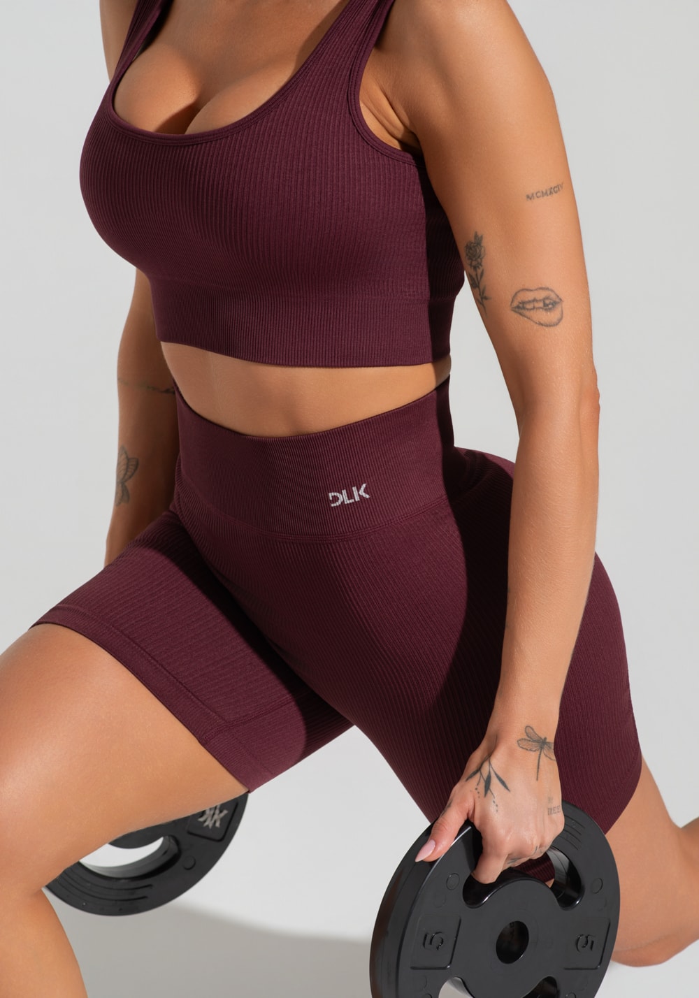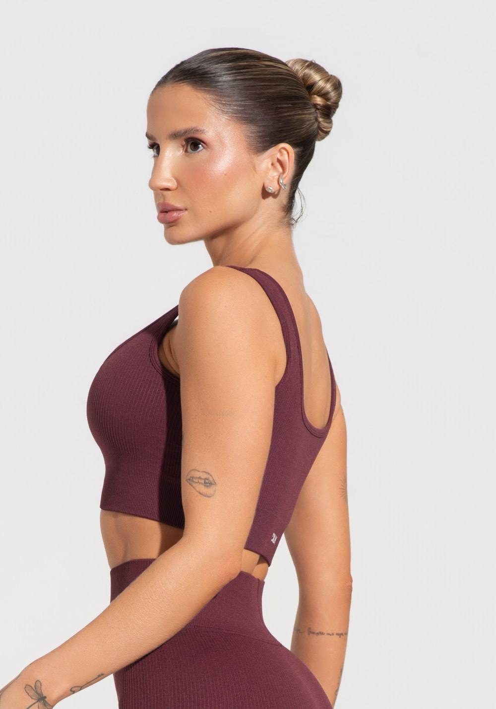 Top fitness feminino vinho canelado com bojo seamless+ dlk